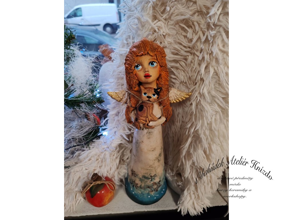 Autorská keramická postavička vytvořená s láskou v mém ateliéru. Každý kus je originál, jemně modelovaný a ručně domalovaný oxidy, glazurami a barvami na keramiku. Hodí se jako milá dekorace do interiéru, ale při šetrném zacházení může být i venku (na zimu doporučuji uklidit).