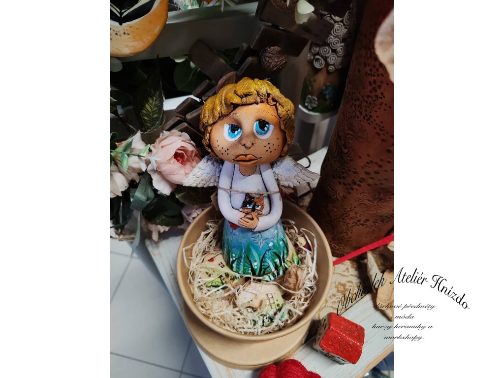 Autorská keramická postavička vytvořená s láskou v mém ateliéru. Každý kus je originál, jemně modelovaný a ručně domalovaný oxidy, glazurami a barvami na keramiku. Hodí se jako milá dekorace do interiéru, ale při šetrném zacházení může být i venku (na zimu doporučuji uklidit).