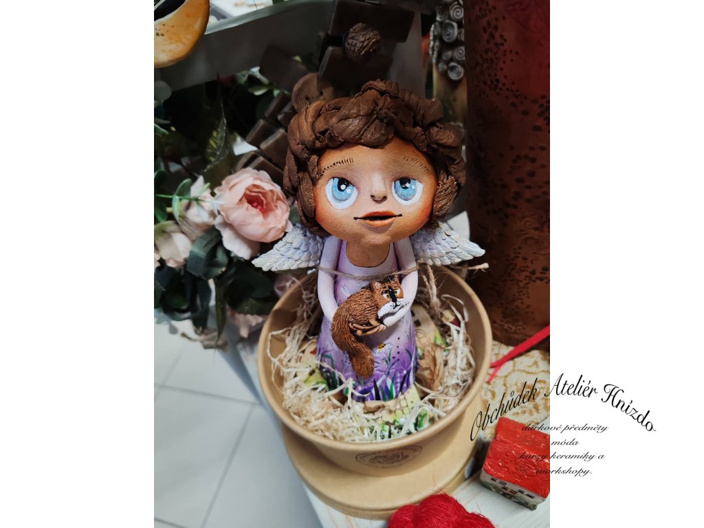 Autorská keramická postavička vytvořená s láskou v mém ateliéru. Každý kus je originál, jemně modelovaný a ručně domalovaný oxidy, glazurami a barvami na keramiku. Hodí se jako milá dekorace do interiéru, ale při šetrném zacházení může být i venku (na zimu doporučuji uklidit).