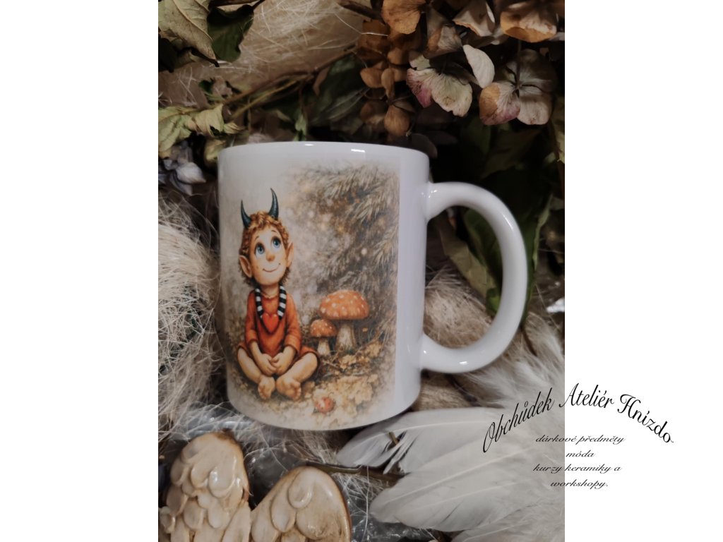 2.jakost- Keramický hrnek – autorský motiv Čertík Florián a Skřítek Baldachýnek