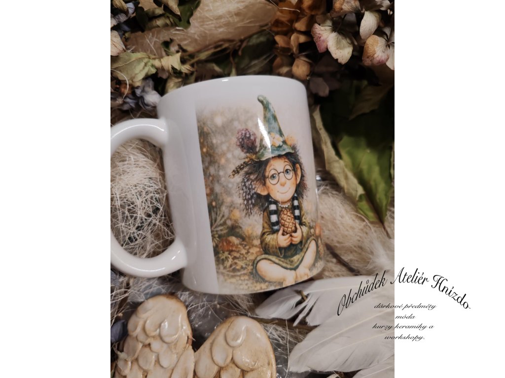 Jemný keramický hrnek s autorským ilustrativním motivem, který vznikl v Ateliéru Hnízdo. Každý hrnek je potištěn s důrazem na detail, měkké barvy a pohádkovou atmosféru. Ideální na ranní kávu, čaj nebo jen pro radost.