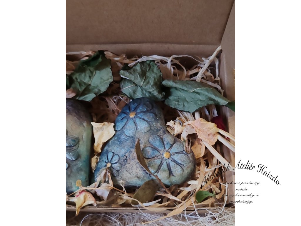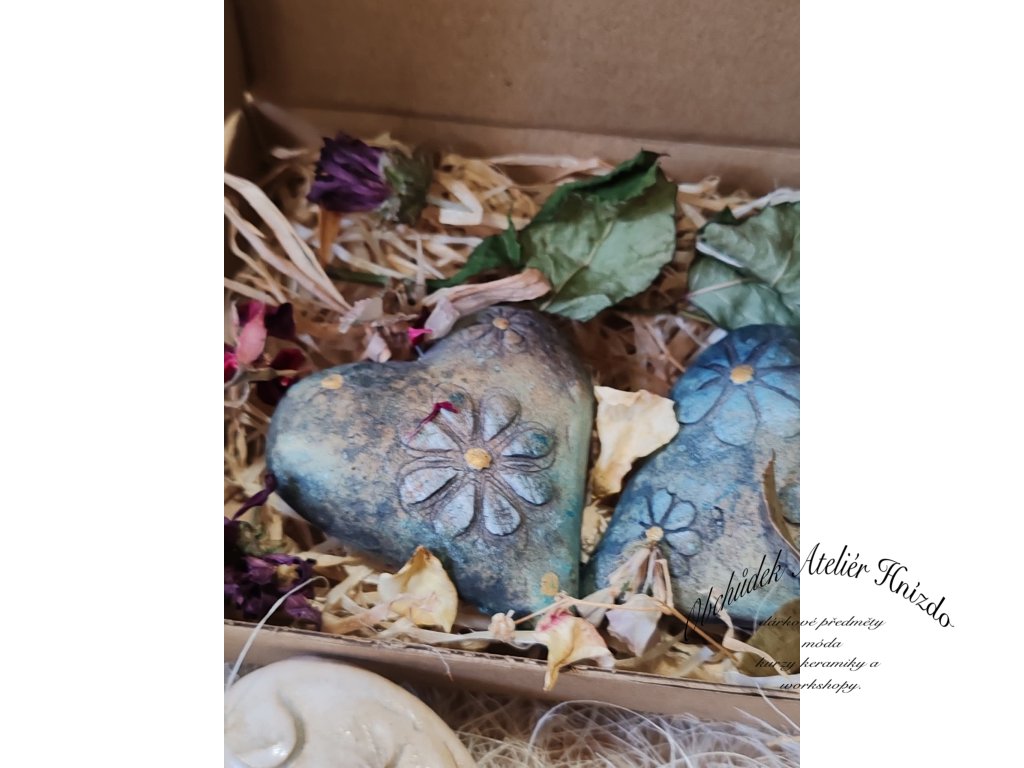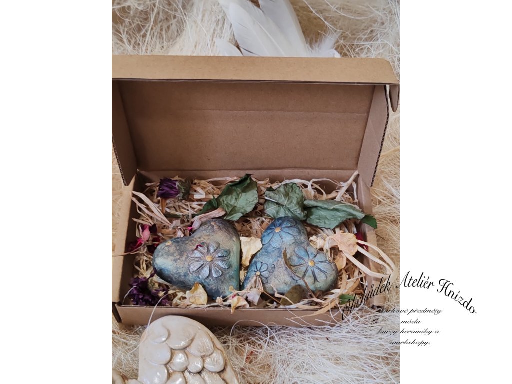 Originální dárková sada dvou dutých keramických srdíček, která jsou ručně tvarovaná, zdobená jemnými květinovými motivy a následně pálená při vysoké teplotě 1200 °C. Každé srdce je domalované oxidem železa, glazurou a barvami Darwi, takže má svůj jedinečný vzhled a kouzlo.