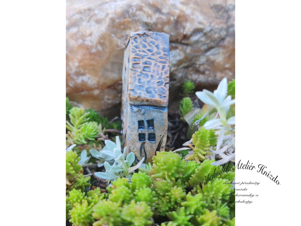 Originální ručně vyráběný keramický domeček na zápich je krásnou dekorací do květináče, truhlíku i zahrádky. Každý kousek je jedinečný – velikost se pohybuje přibližně kolem 6 × 2 × 5 cm.