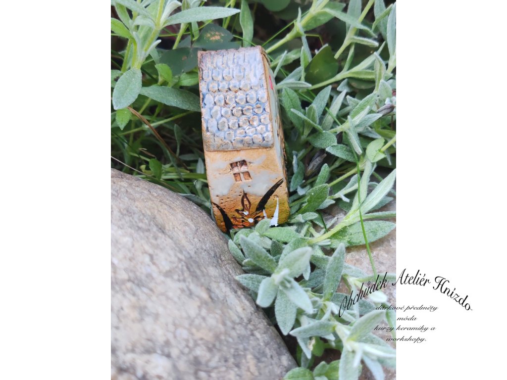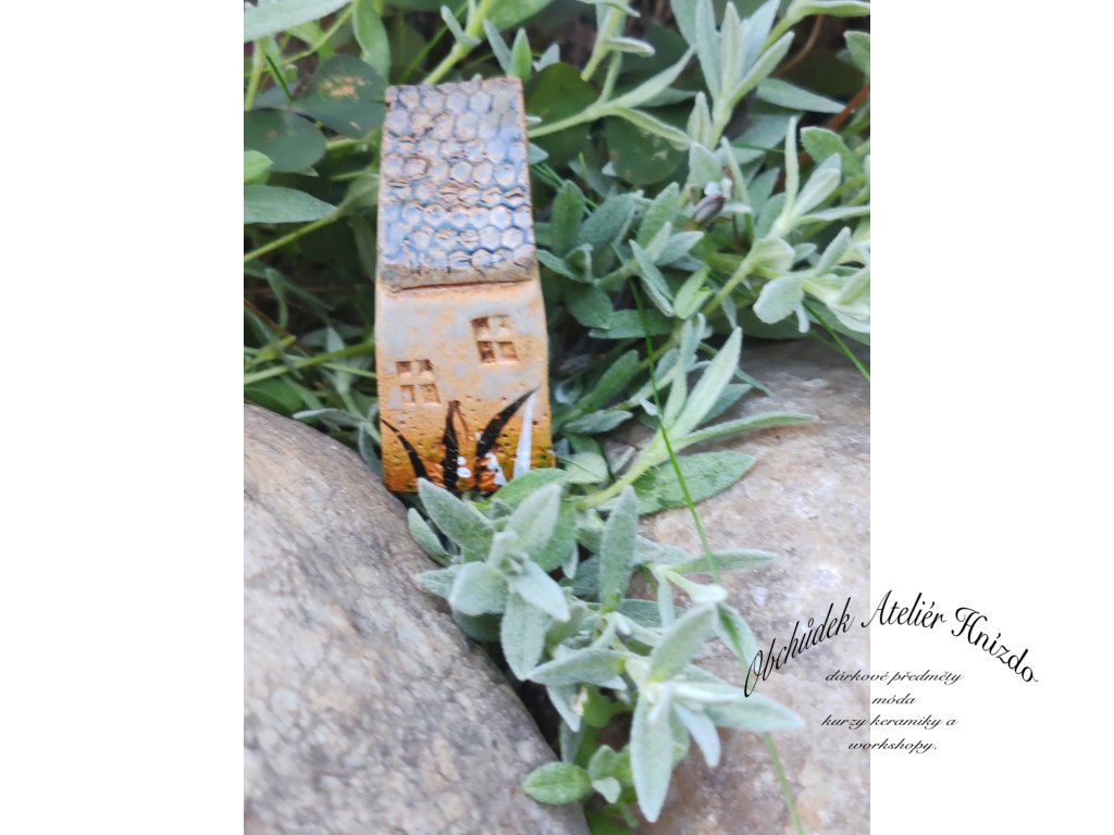 Originální ručně vyráběný keramický domeček na zápich je krásnou dekorací do květináče, truhlíku i zahrádky. Každý kousek je jedinečný – velikost se pohybuje přibližně kolem 6 × 2 × 5 cm.