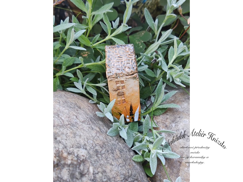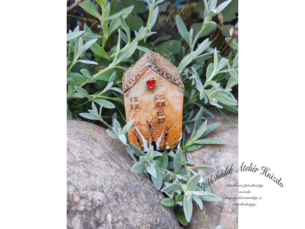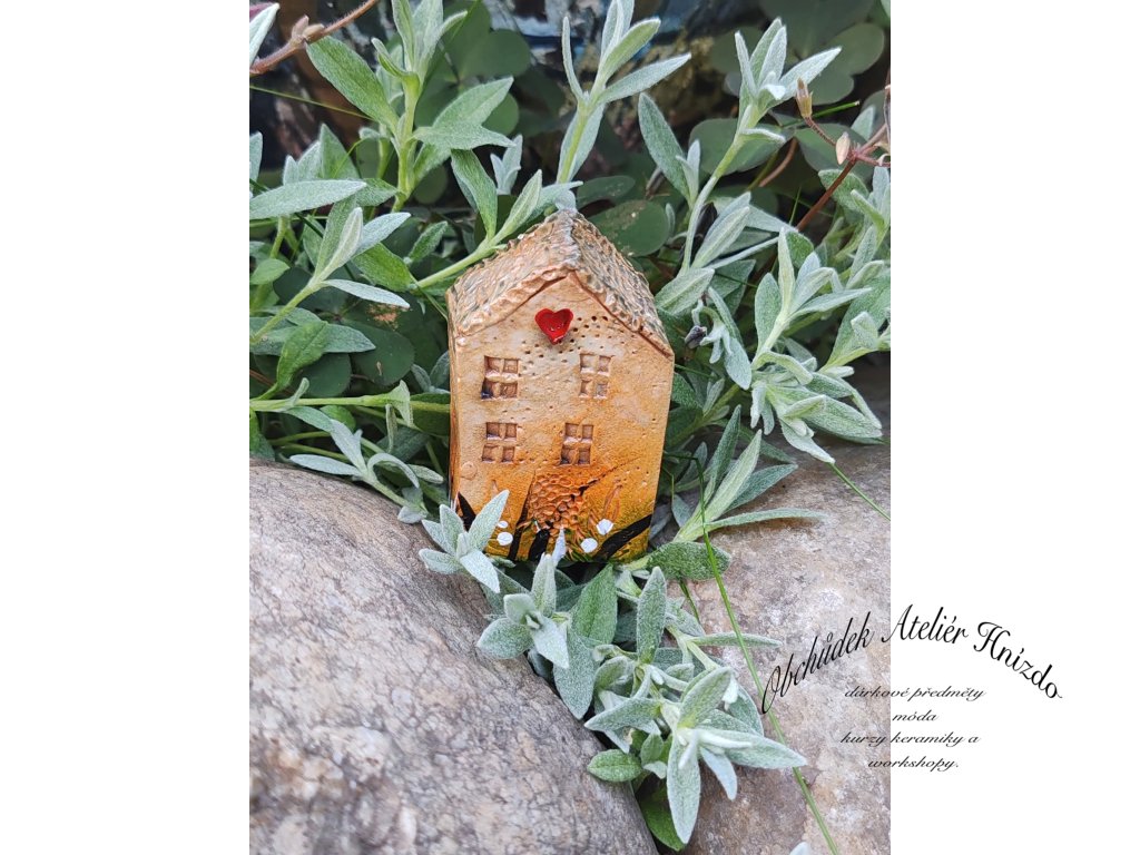 Originální ručně vyráběný keramický domeček na zápich je krásnou dekorací do květináče, truhlíku i zahrádky. Každý kousek je jedinečný – velikost se pohybuje přibližně kolem 6 × 2 × 5 cm.