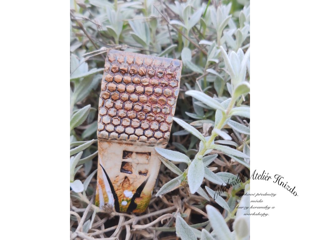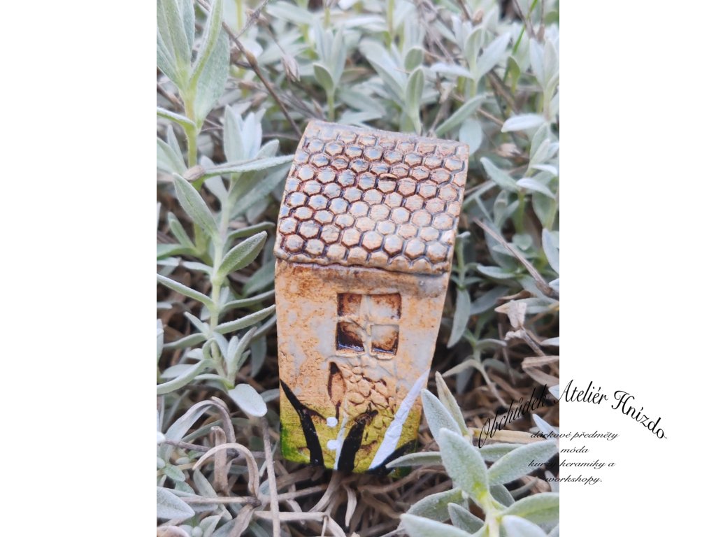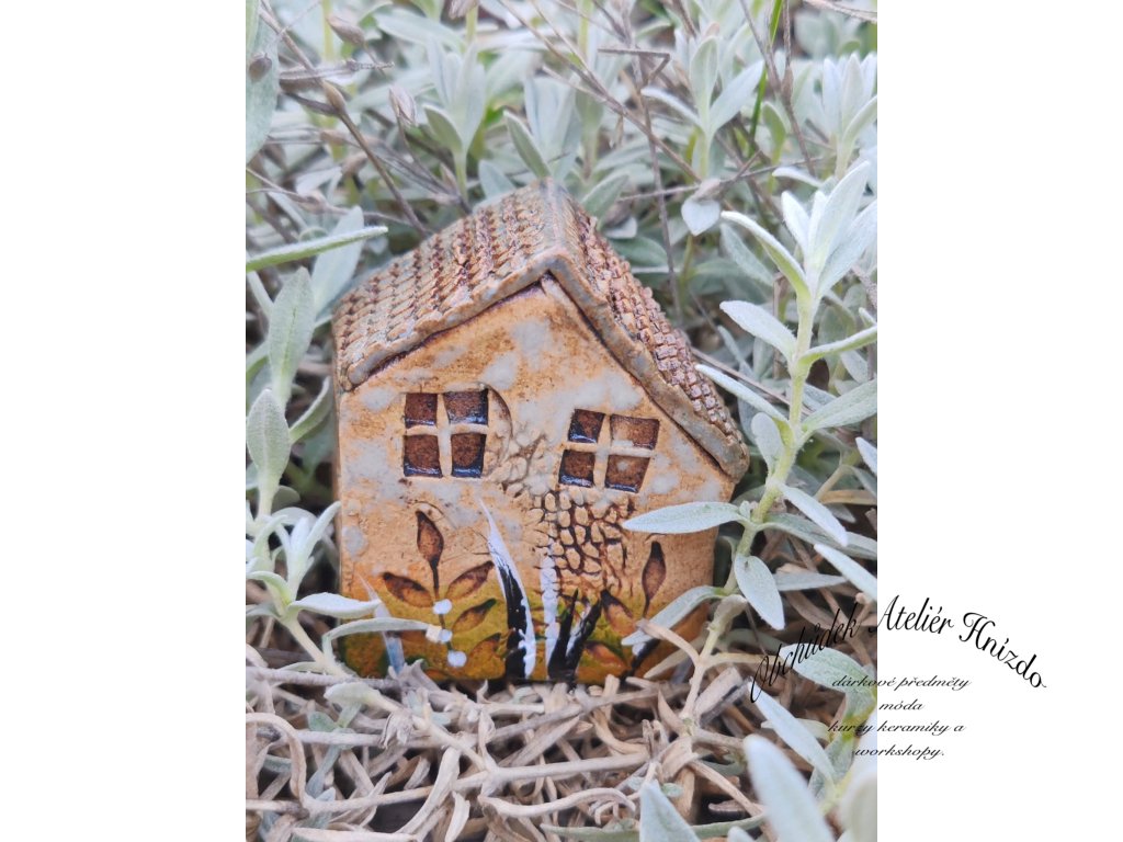 Originální ručně vyráběný keramický domeček na zápich je krásnou dekorací do květináče, truhlíku i zahrádky. Každý kousek je jedinečný – velikost se pohybuje přibližně kolem 6 × 2 × 5 cm.