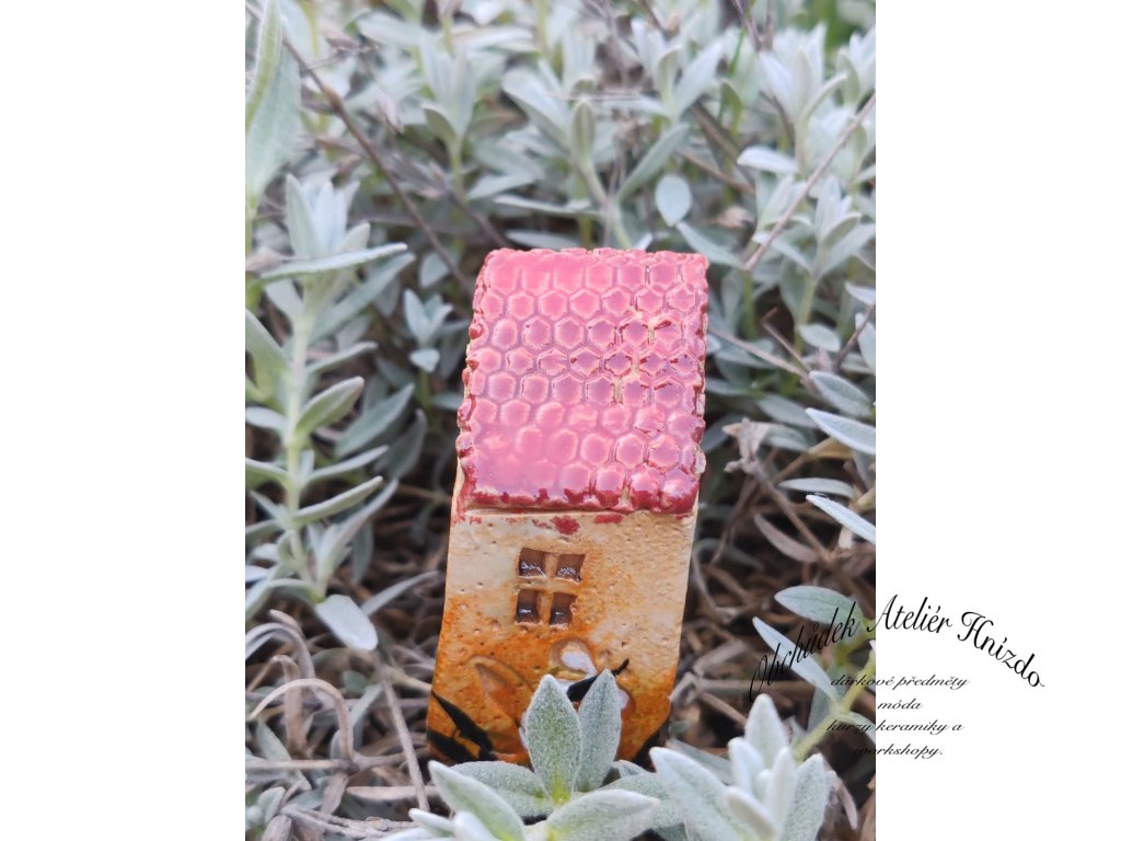 Originální ručně vyráběný keramický domeček na zápich je krásnou dekorací do květináče, truhlíku i zahrádky. Každý kousek je jedinečný – velikost se pohybuje přibližně kolem 6 × 2 × 5 cm.
