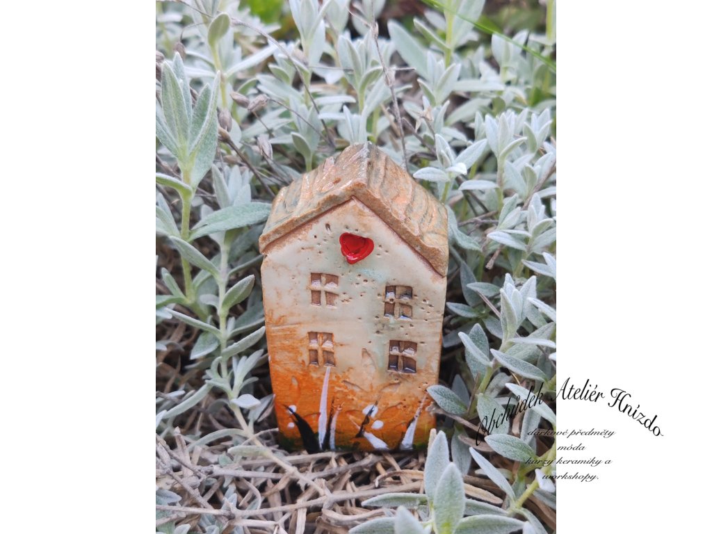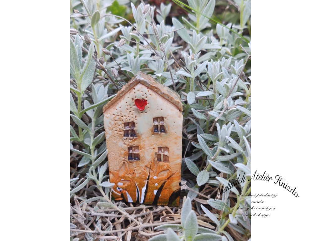Originální ručně vyráběný keramický domeček na zápich je krásnou dekorací do květináče, truhlíku i zahrádky. Každý kousek je jedinečný – velikost se pohybuje přibližně kolem 6 × 2 × 5 cm.