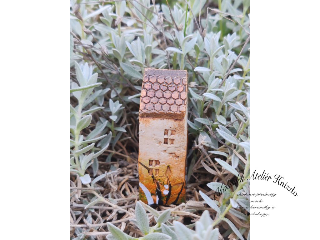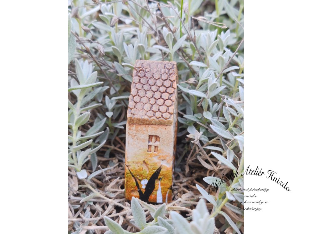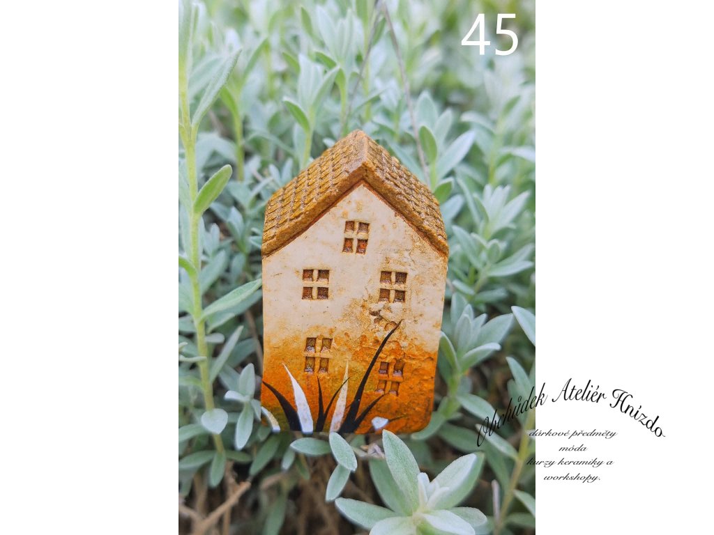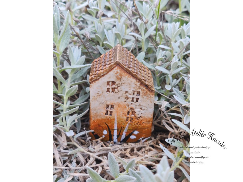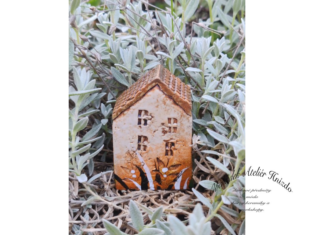 Originální ručně vyráběný keramický domeček na zápich je krásnou dekorací do květináče, truhlíku i zahrádky. Každý kousek je jedinečný – velikost se pohybuje přibližně kolem 6 × 2 × 5 cm.