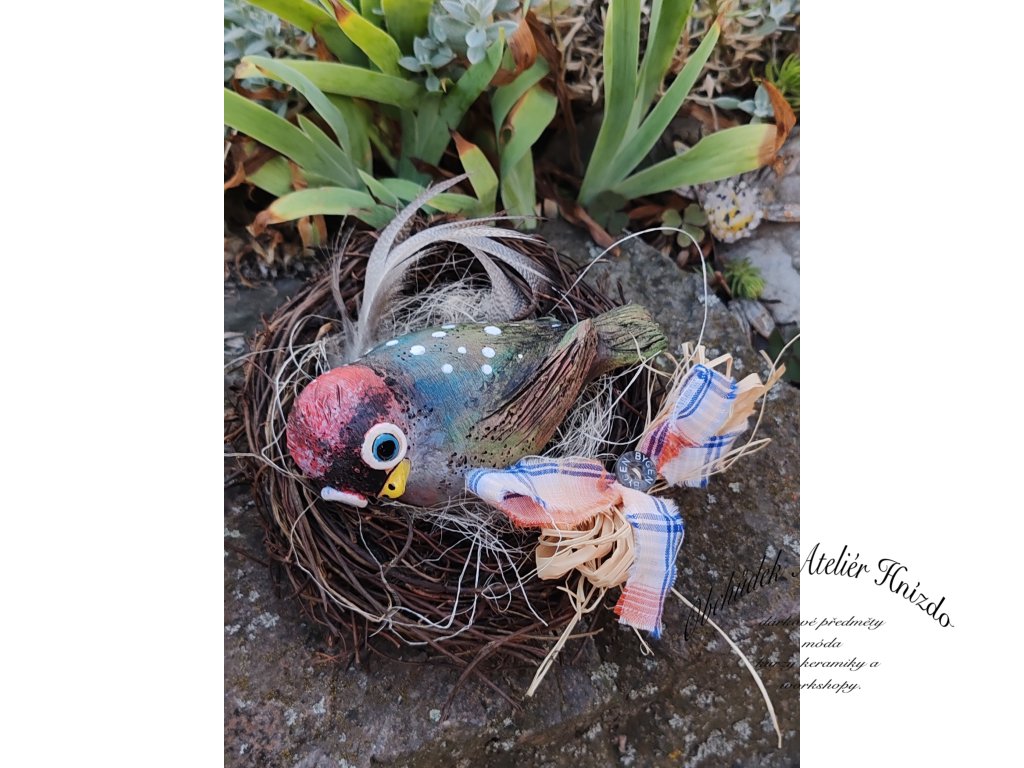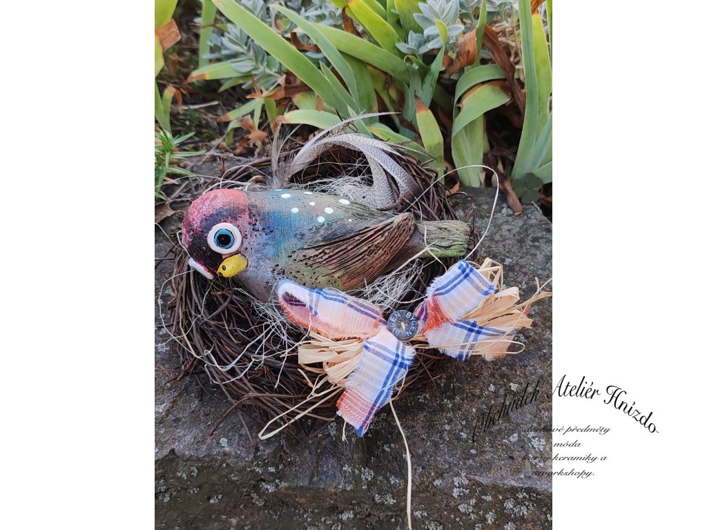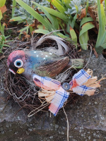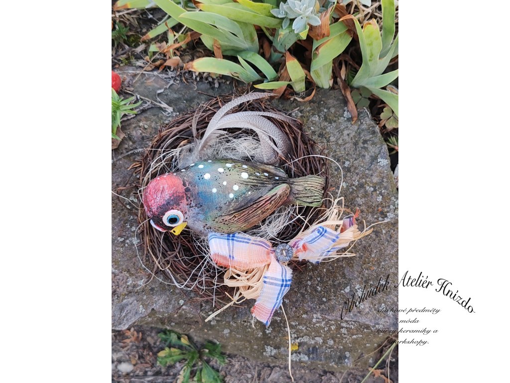 Proutěné Hnízdo s keramickým ptáčkm.