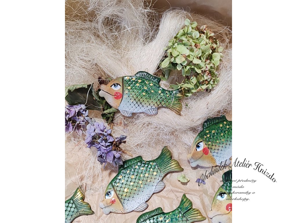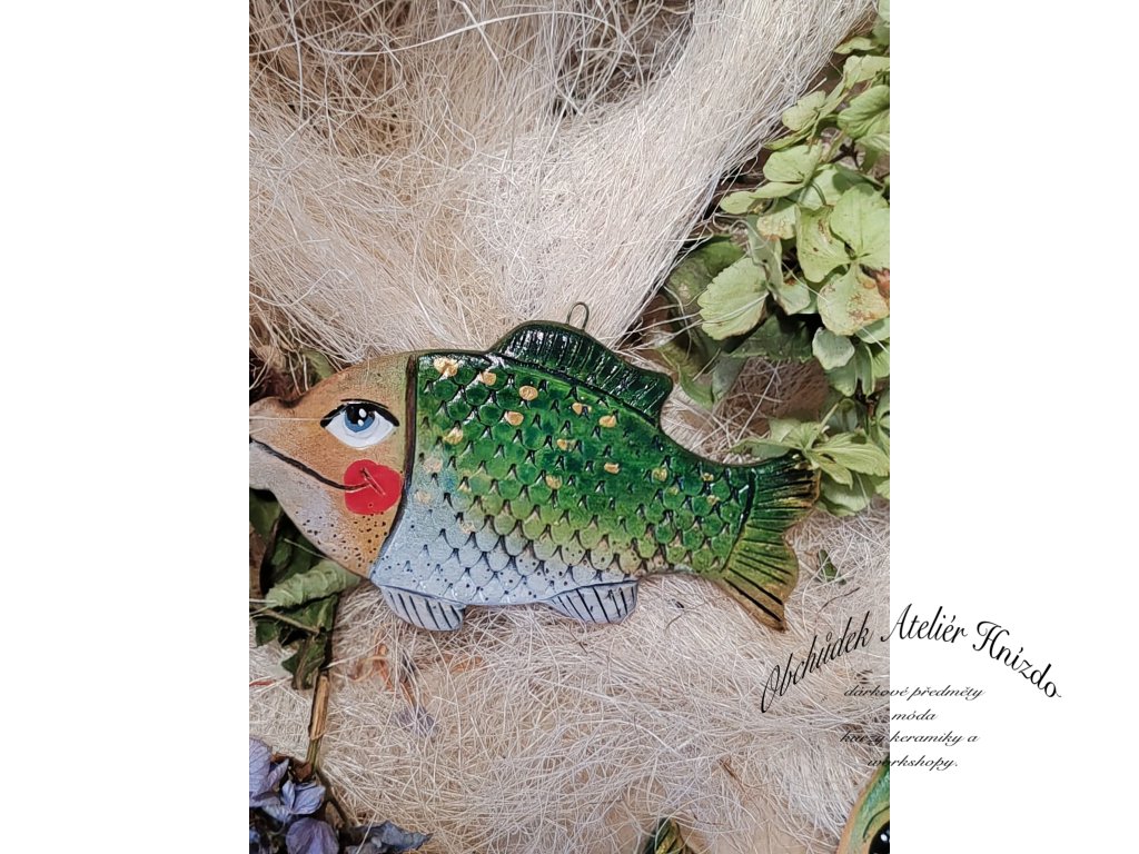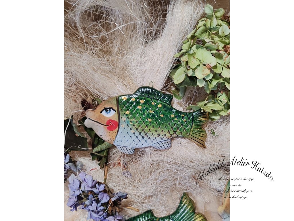 Ručně modelovaný keramický kapřík z Ateliéru Hnízdo, autorský výrobek Romany Laštovičkové.