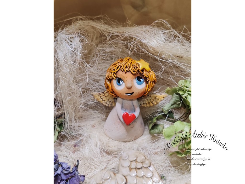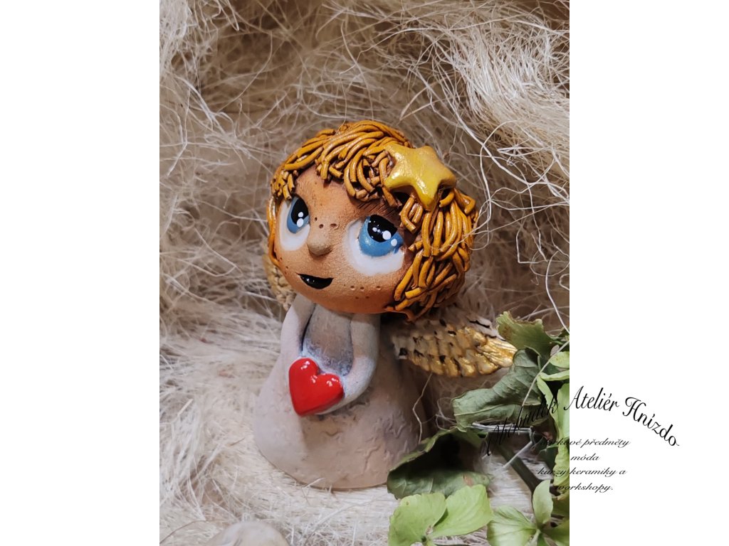 Andílek s jemným úsměvem, zlatou hvězdičkou ve vlasech a srdcem v rukou je symbolem klidu, lásky a ochrany. Krásná dekorace, která se hodí nejen pro adventní období, ale i jako dárek pro radost nebo pro štěstí po celý rok.