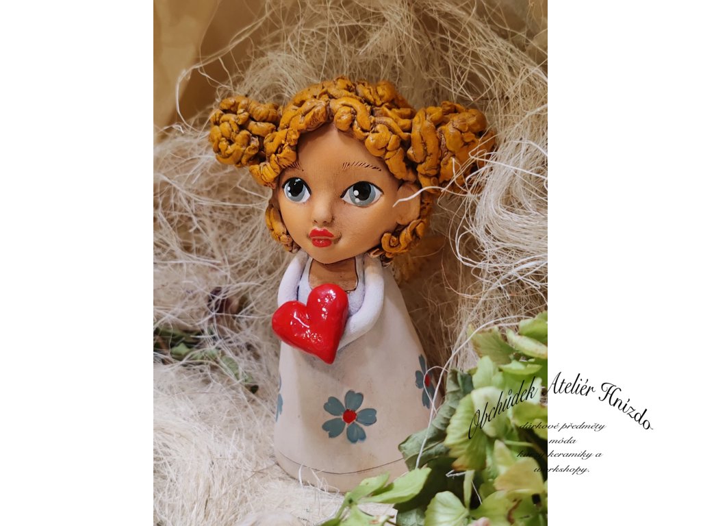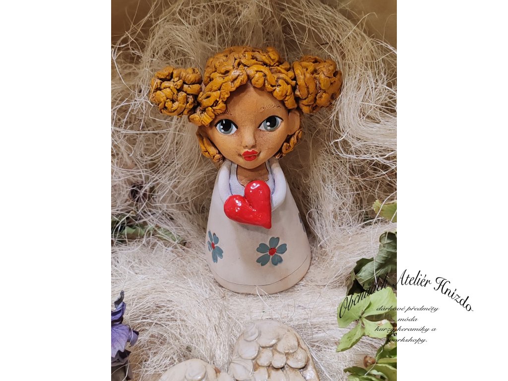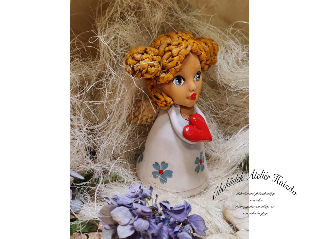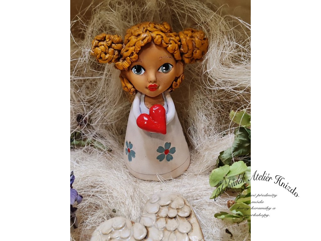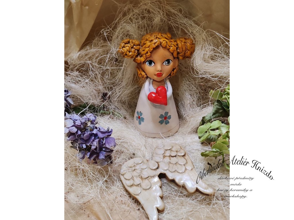 Ručně modelovaný keramický anděl z Ateliéru Hnízdo, autorský výrobek Romany Laštovičkové.