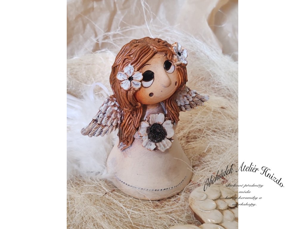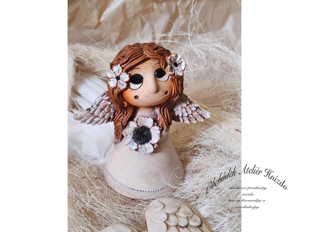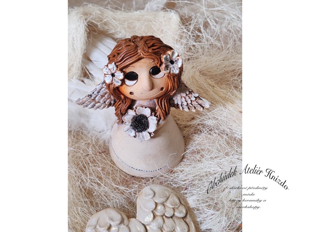 Vyrobeno z kvalitní hlíny Svída Jaroměř, páleno na vysokou teplotu (1200 °C), dekorováno glazurami z Roudnice, oxidem železa a barvami Darwi. Díky tomu je andělka pevná a odolná – hodí se do interiéru i venku, kde snese déšť i mráz.