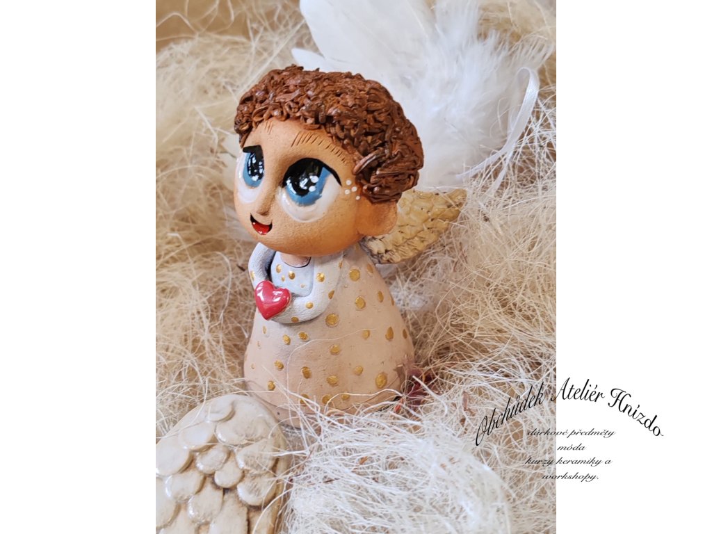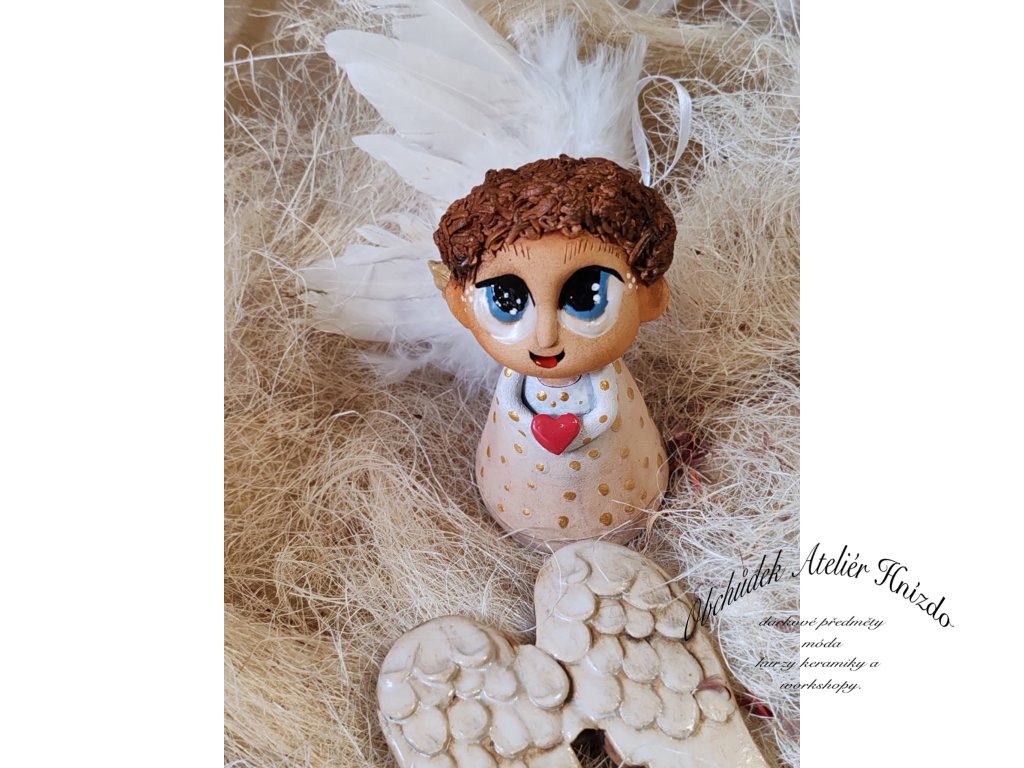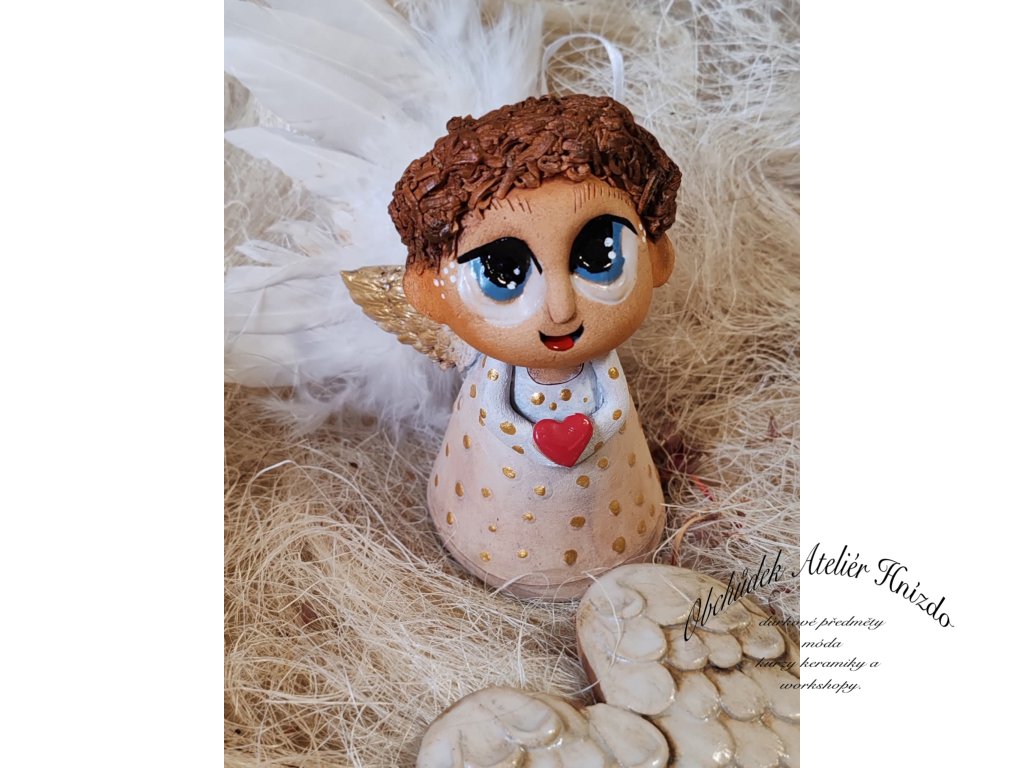 Originální keramický andílek ve tvaru zvonečku z Ateliéru Hnízdo, autorský výrobek Romany Laštovičkové. Každý anděl je jedinečný originál, modelovaný a malovaný ručně s jemnými detaily. Tento andílek s hvězdičkou symbolizuje radost, ochranu a světlo.