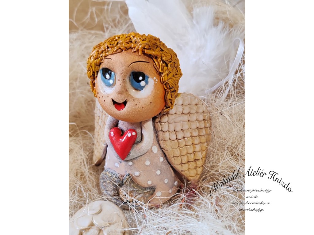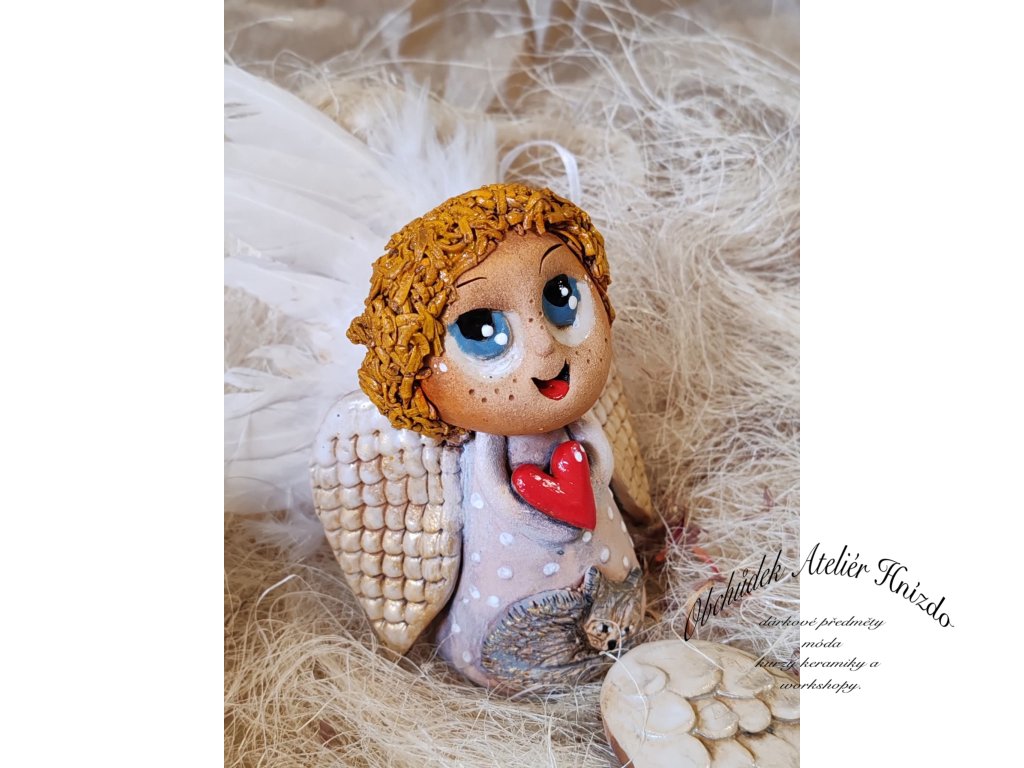 Originální keramický andílek ve tvaru zvonečku z Ateliéru Hnízdo, autorský výrobek Romany Laštovičkové. Každý anděl je jedinečný originál, modelovaný a malovaný ručně s jemnými detaily. Tento andílek s hvězdičkou symbolizuje radost, ochranu a světlo.