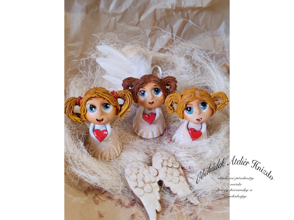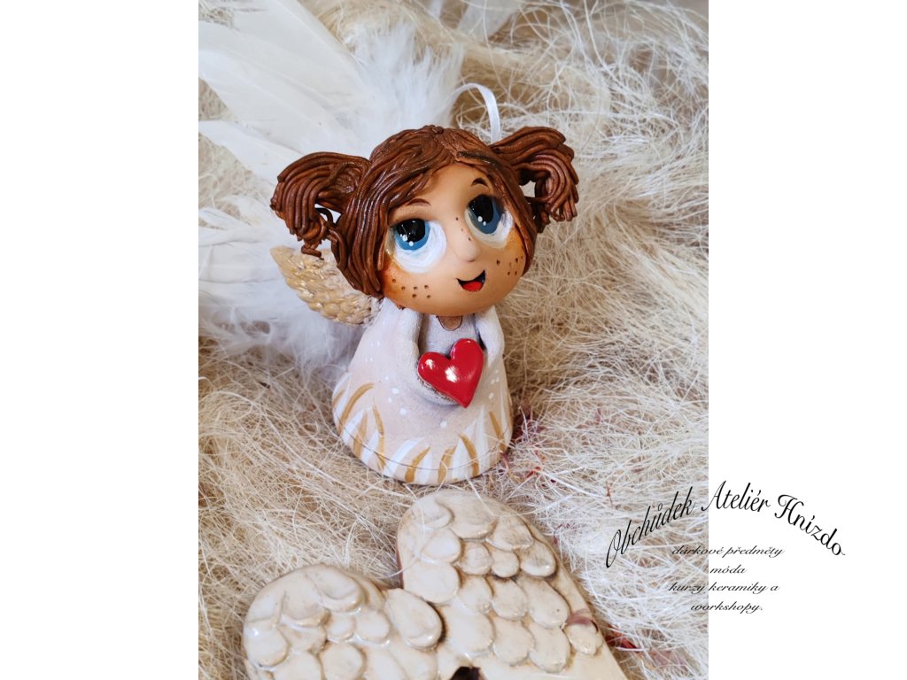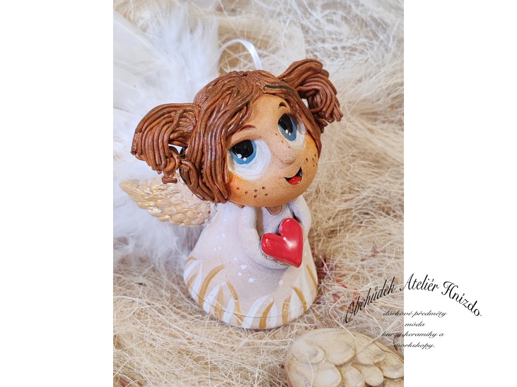 Originální keramický andílek ve tvaru zvonečku z Ateliéru Hnízdo, autorský výrobek Romany Laštovičkové. Každý anděl je jedinečný originál, modelovaný a malovaný ručně s jemnými detaily. Tento andílek s hvězdičkou symbolizuje radost, ochranu a světlo.