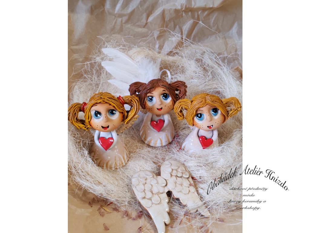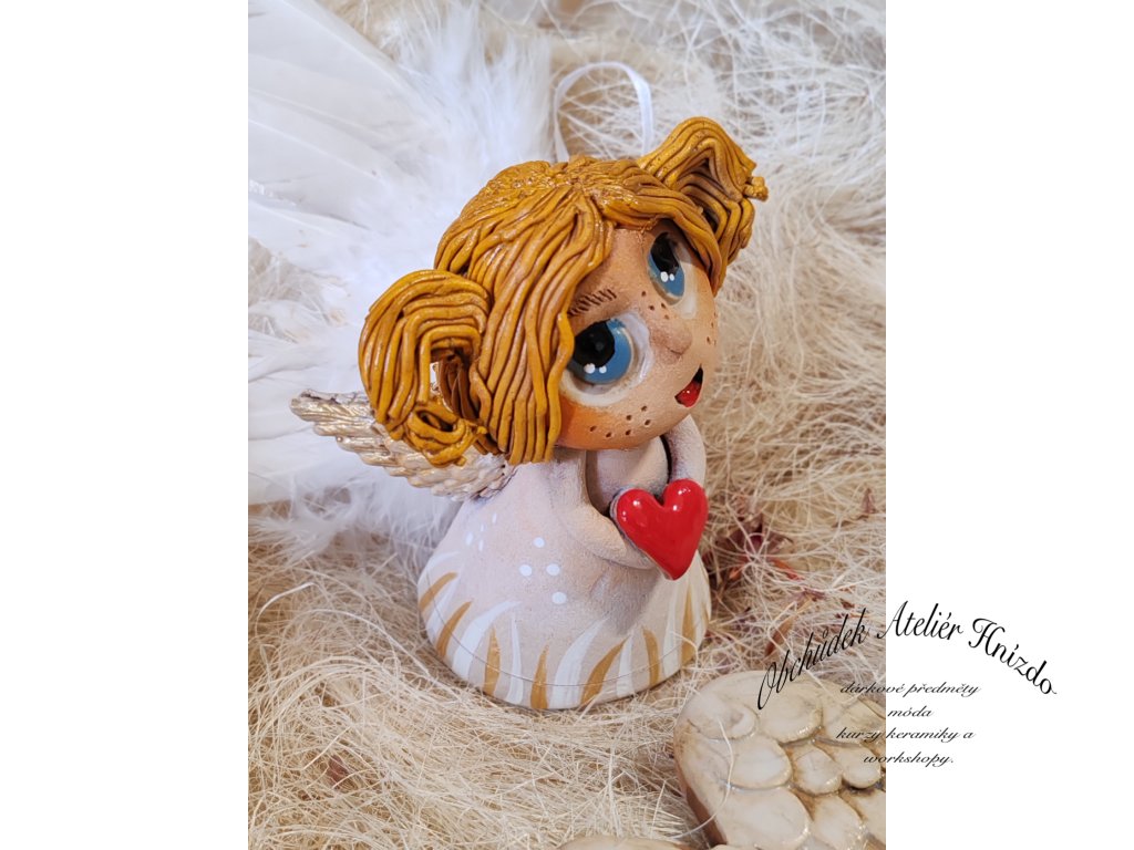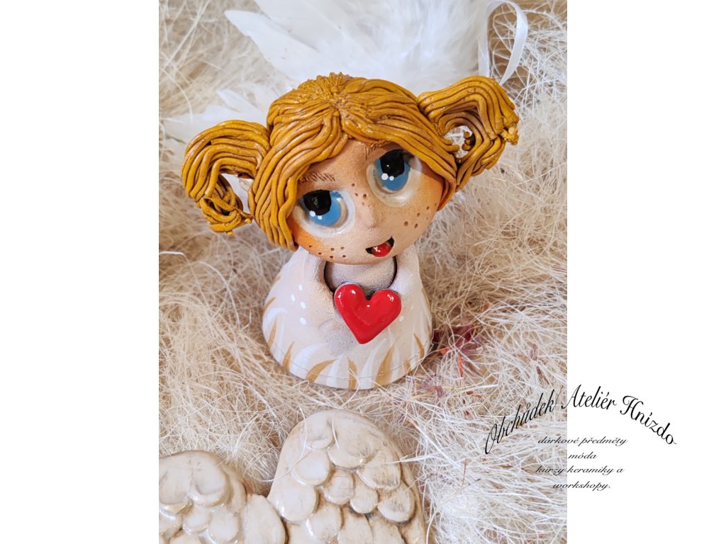 Originální keramický andílek ve tvaru zvonečku z Ateliéru Hnízdo, autorský výrobek Romany Laštovičkové. Každý anděl je jedinečný originál, modelovaný a malovaný ručně s jemnými detaily. Tento andílek s hvězdičkou symbolizuje radost, ochranu a světlo.