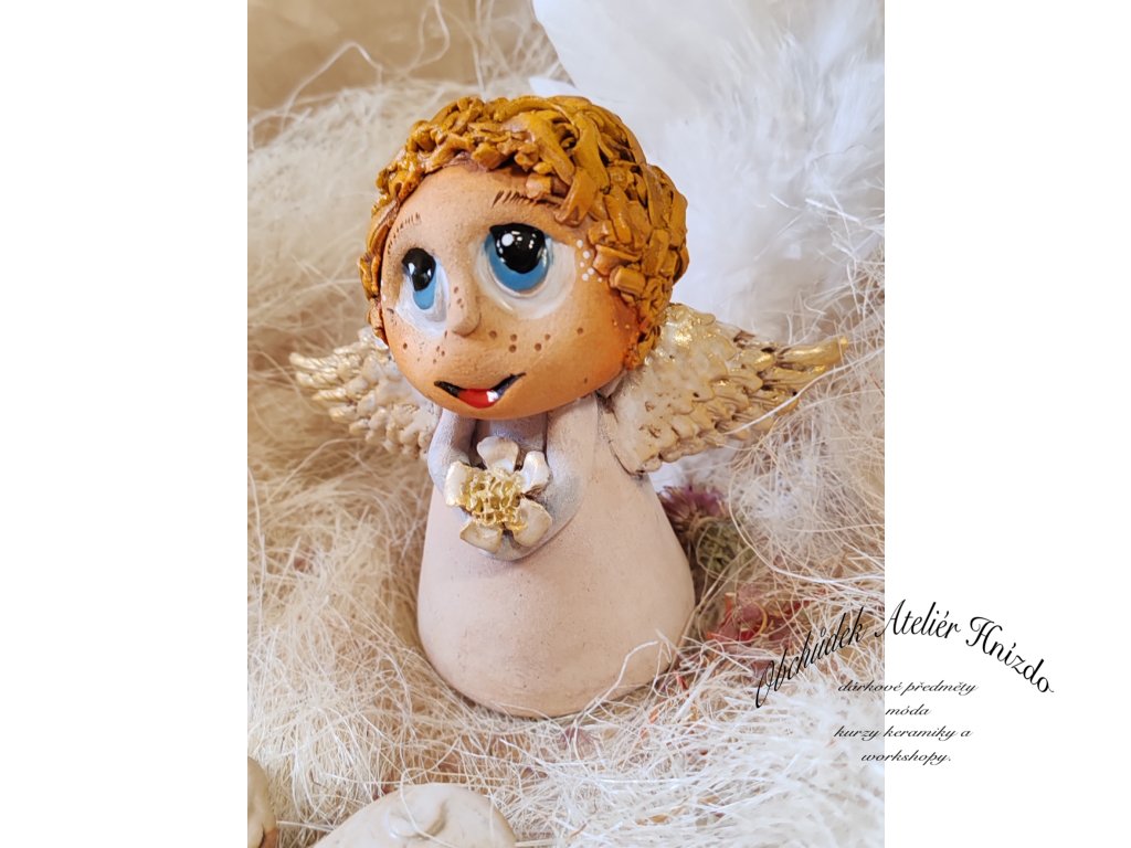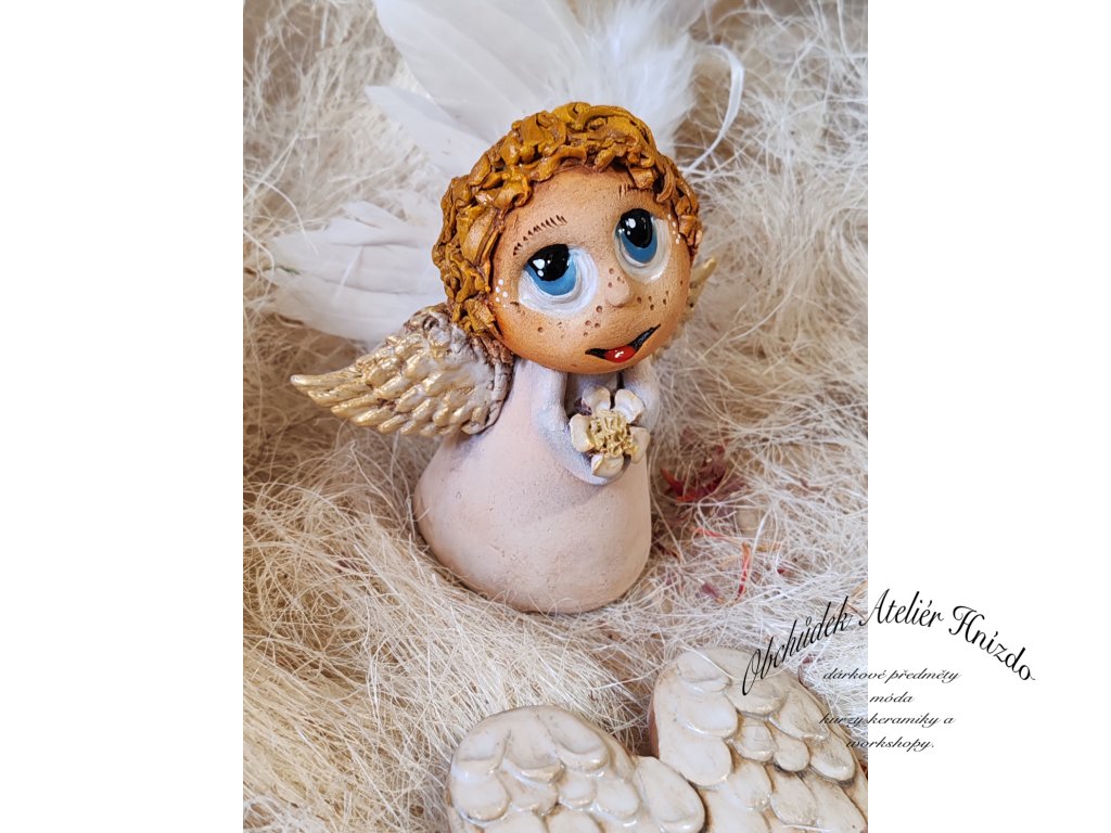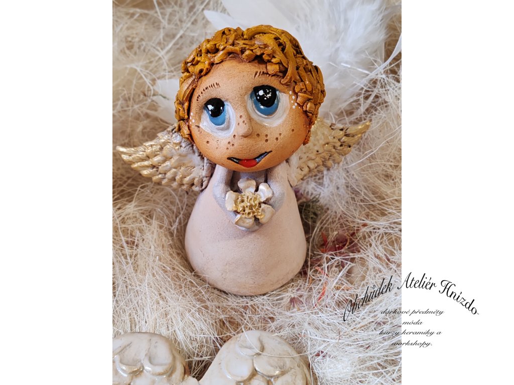 Originální keramický andílek ve tvaru zvonečku z Ateliéru Hnízdo, autorský výrobek Romany Laštovičkové. Každý anděl je jedinečný originál, modelovaný a malovaný ručně s jemnými detaily. Tento andílek s hvězdičkou symbolizuje radost, ochranu a světlo.