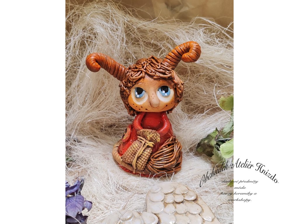 Ručně modelovaný keramický čert ve tvaru zvonečku z Ateliéru Hnízdo, autorský výrobek Romany Laštovičkové.