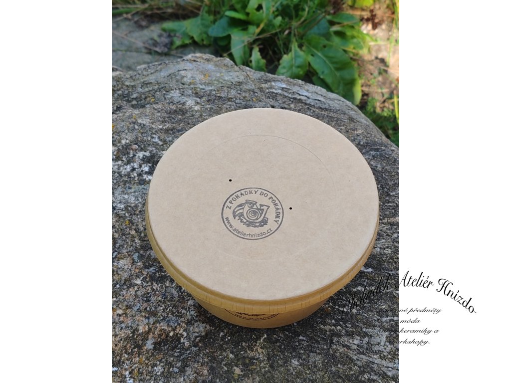 📦 Balení: Kulatá dárková krabička s víčkem a logem, vyplněná přírodní drtí a sušenými květy – připravená k okamžitému darování.