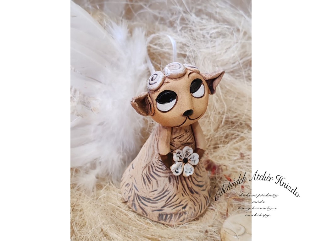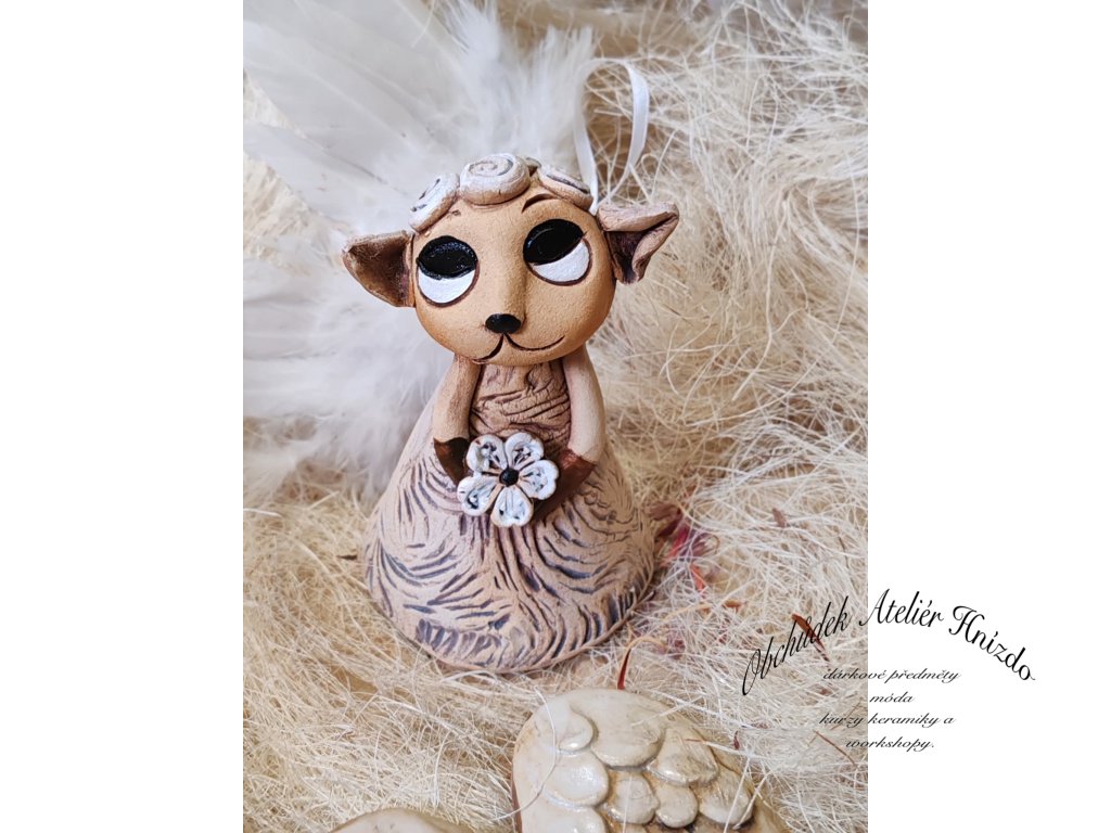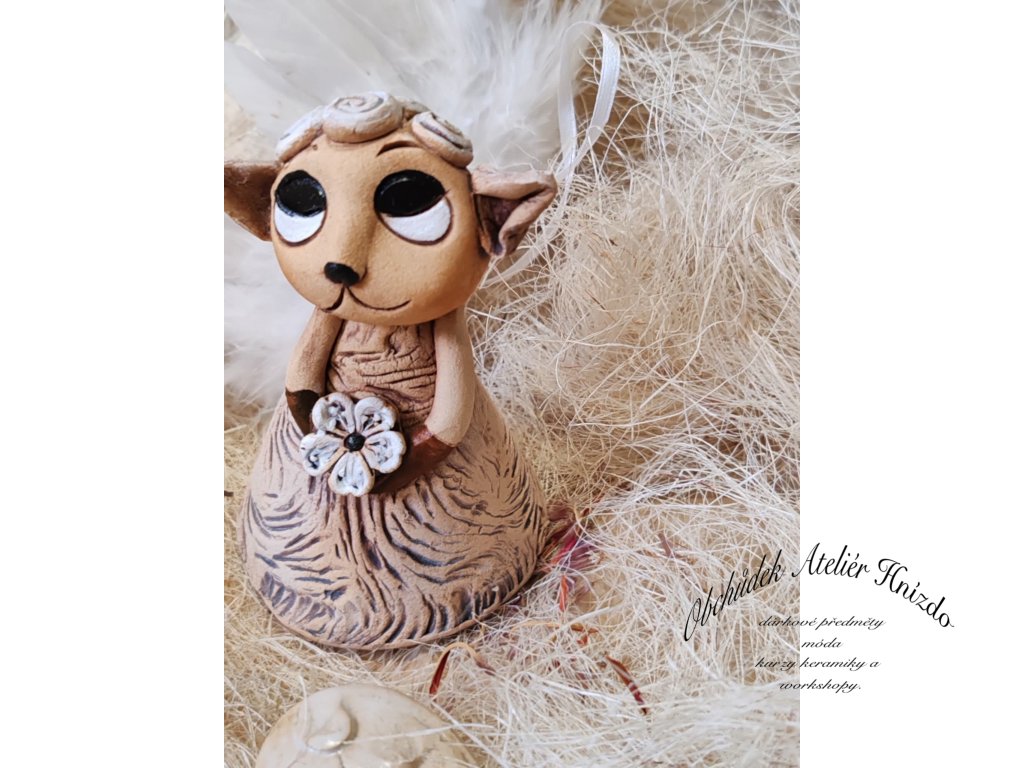 Originální keramická ovečka ve tvaru zvonečku z Ateliéru Hnízdo, autorský výrobek Romany Laštovičkové. Ručně modelovaná figurka s jemnými detaily, zdobená květinou a hravým výrazem, působí kouzelně a něžně. Každá ovečka je jedinečný originál, nikdy nevznikají dva stejní.