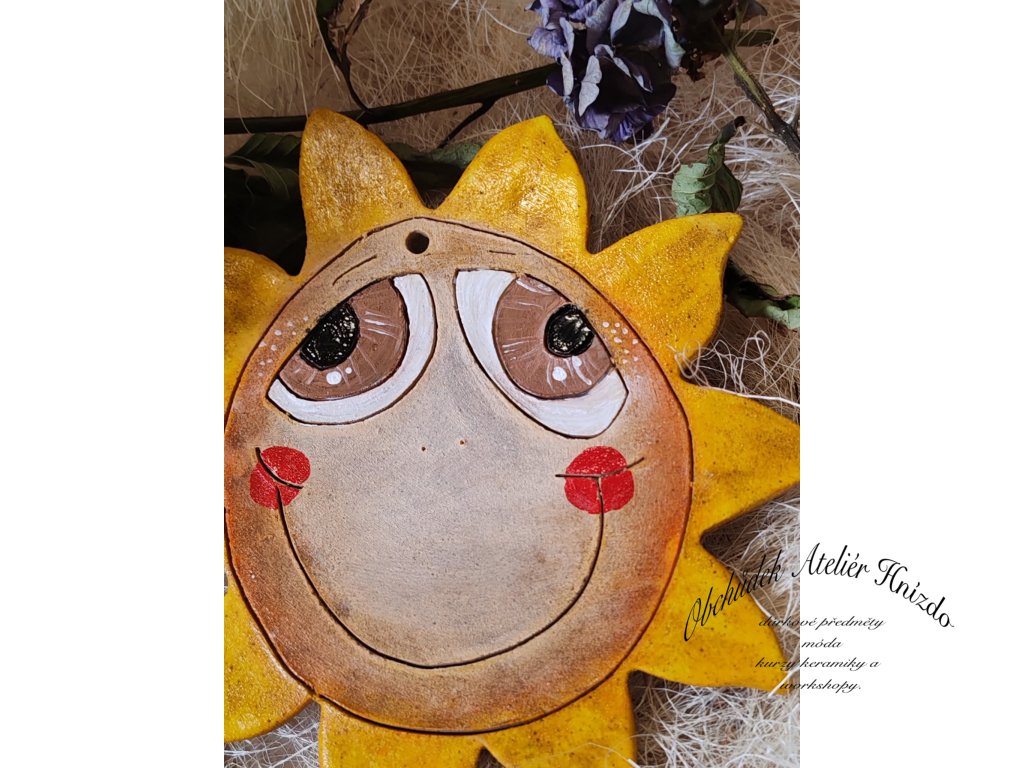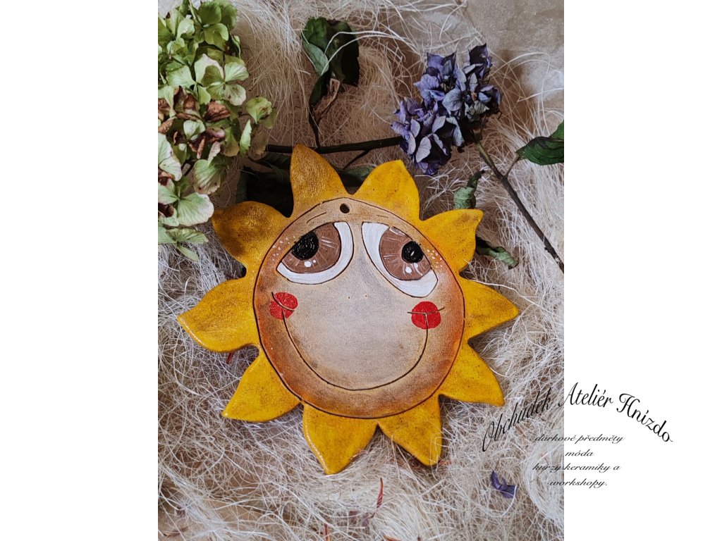 Ručně vyráběné keramické sluníčko, které rozzáří každý domov i zahradu. Tento veselý kousek je pálený při teplotě 1200 °C, malovaný oxidem železa, glazurou a barvami Darwi. Díky tomu je odolné, barevně stálé a vhodné jak do interiéru, tak i na venkovní umístění.