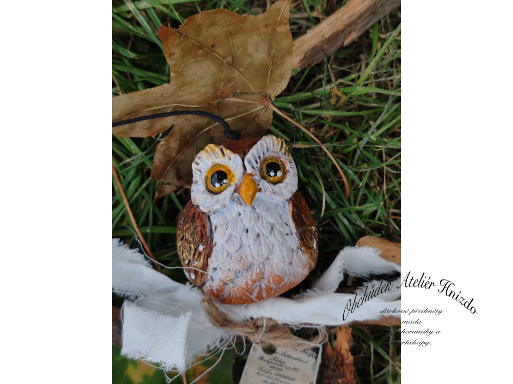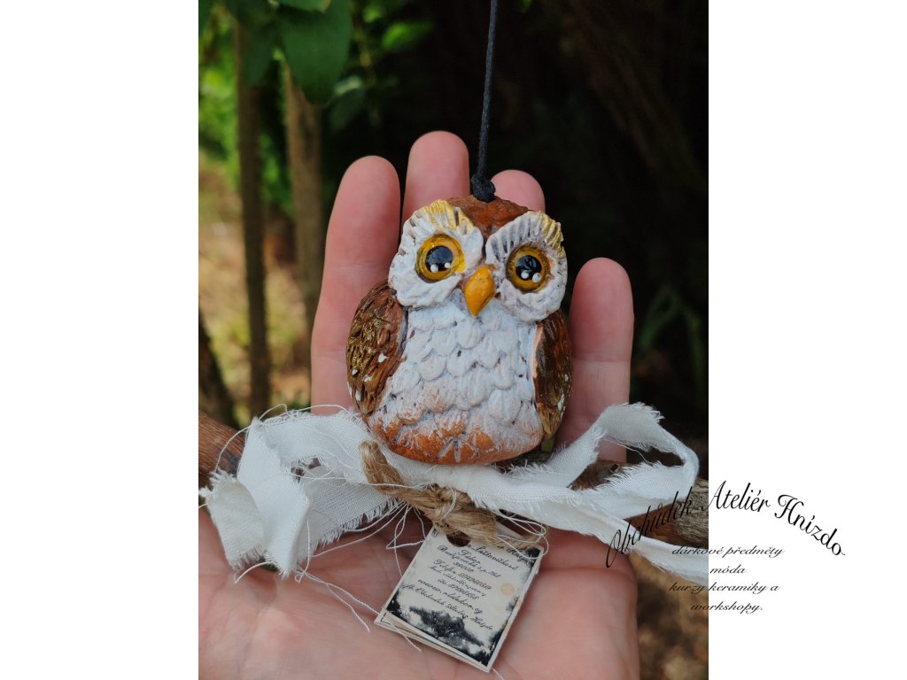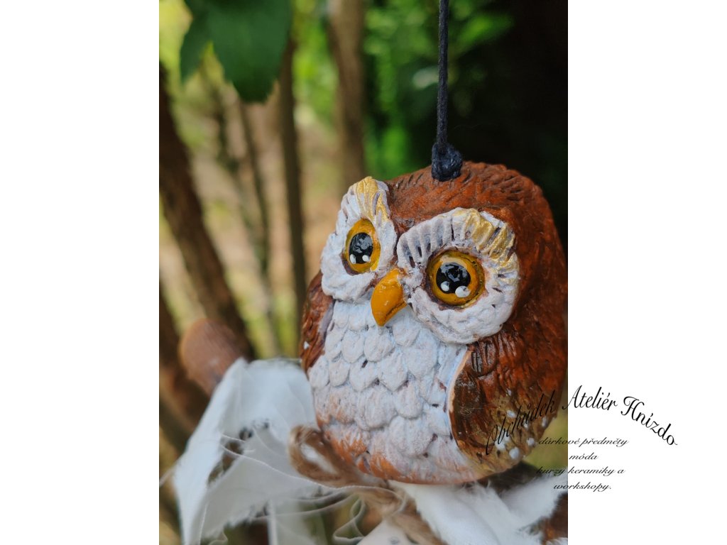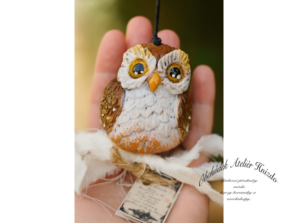 Ručně modelovaná keramická sovička z Ateliéru Hnízdo – originální autorský výrobek Romany Laštovičkové. Každý kousek je malovaný s důrazem na detail a výraz očí, proto působí živě a hravě.