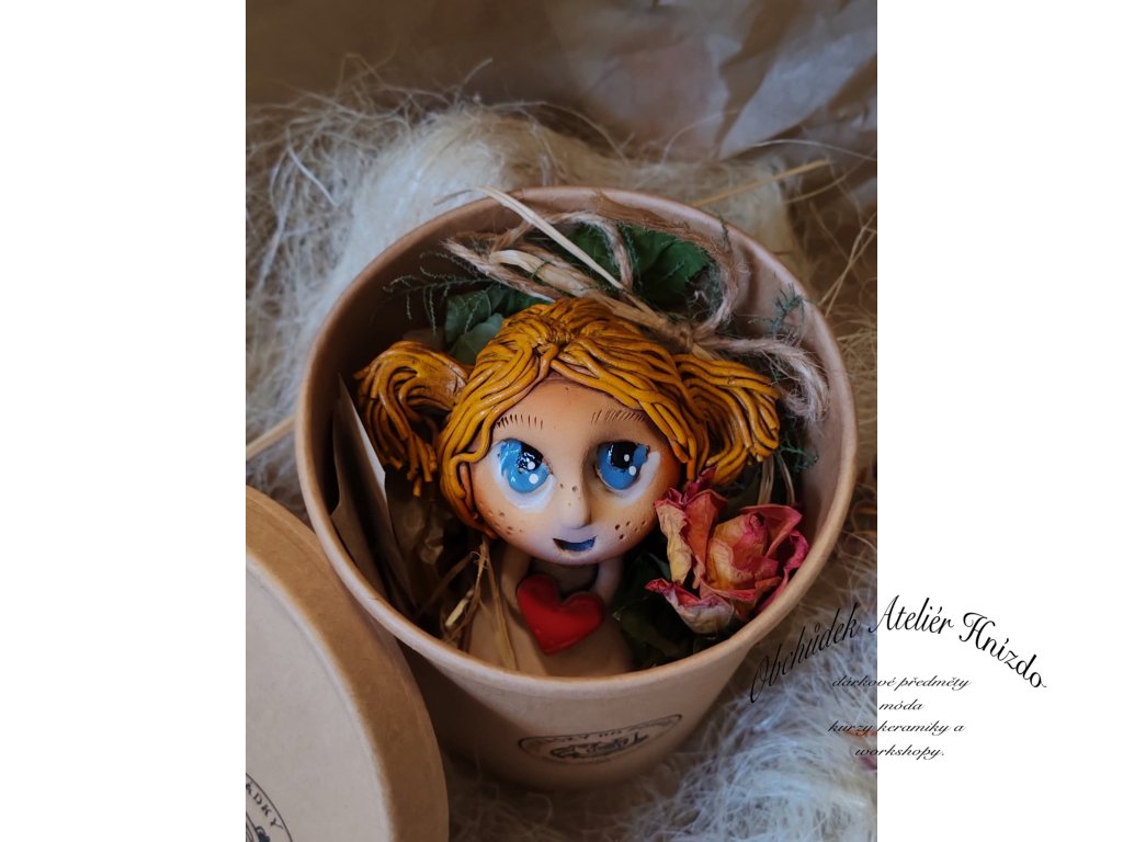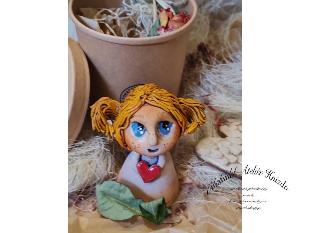 Roztomilý keramický andílek ve tvaru zvonečku z Ateliéru Hnízdo, originální autorský výrobek Romany Laštovičkové. Každý andílek je ručně modelovaný, malovaný a zdobený drobnými detaily, takže žádní dva nejsou stejní – vždy jde o jedinečný originál.