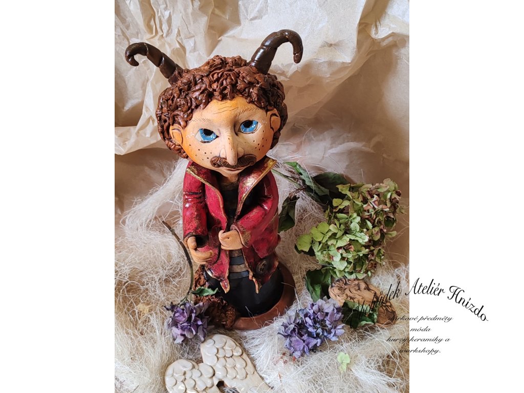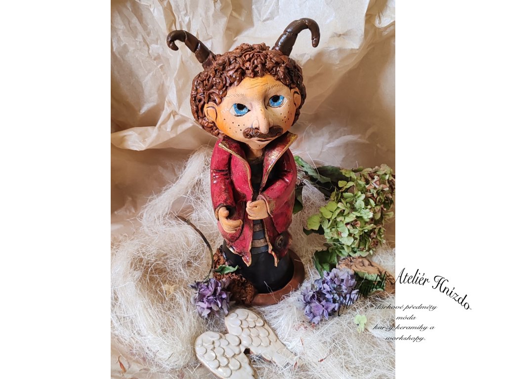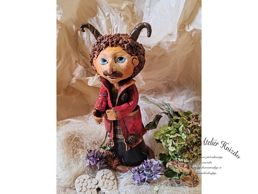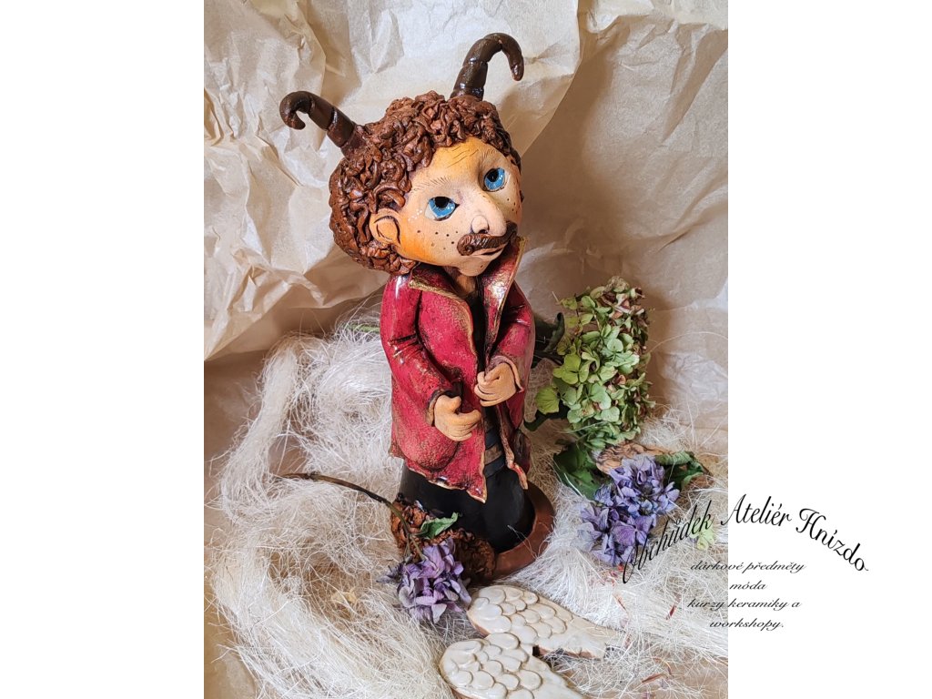 Každý kus je ručně modelovaný z hlíny, následně vypálený a malovaný kvalitními barvami a glazurami Darwi. Jde o originální autorskou keramiku – žádný čert není úplně stejný, každý má svůj jedinečný výraz.