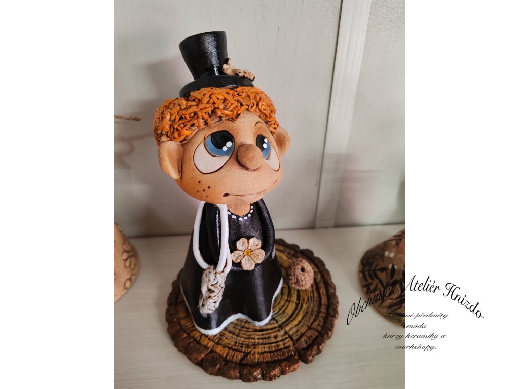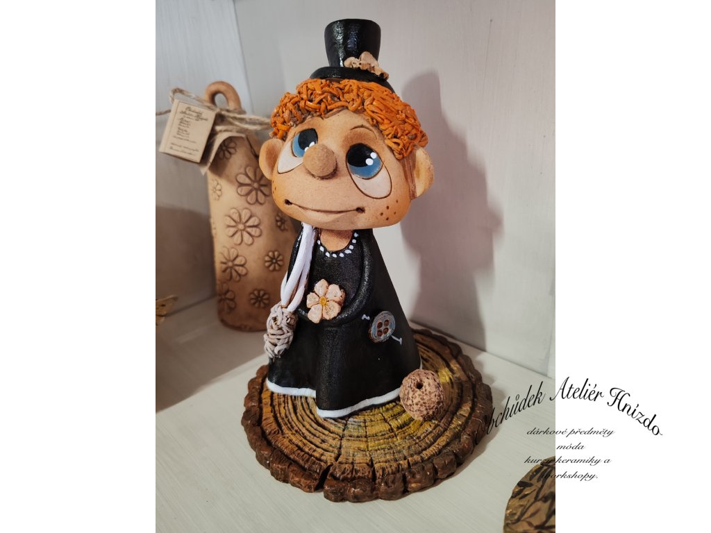 Ručně vyráběná keramická postavička – kominíček jménem Jindříšek.