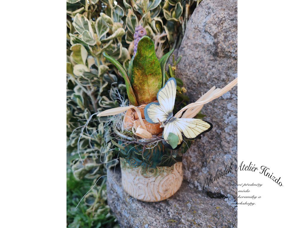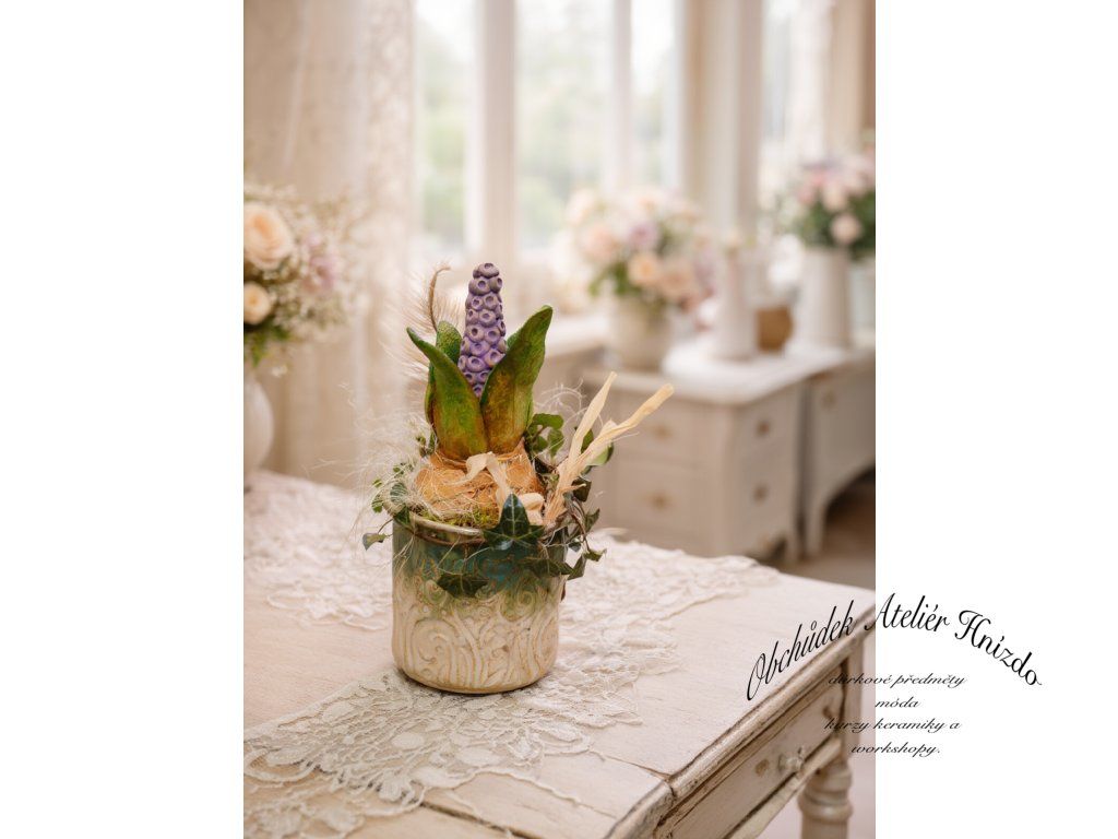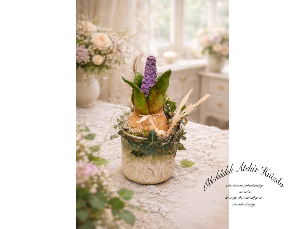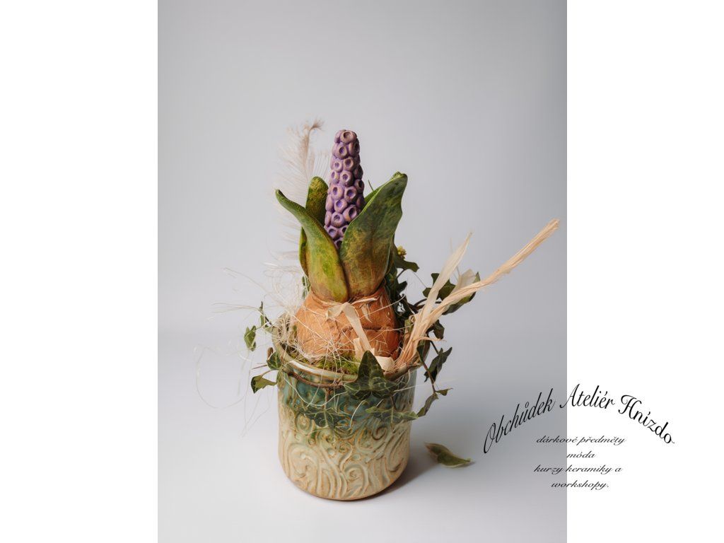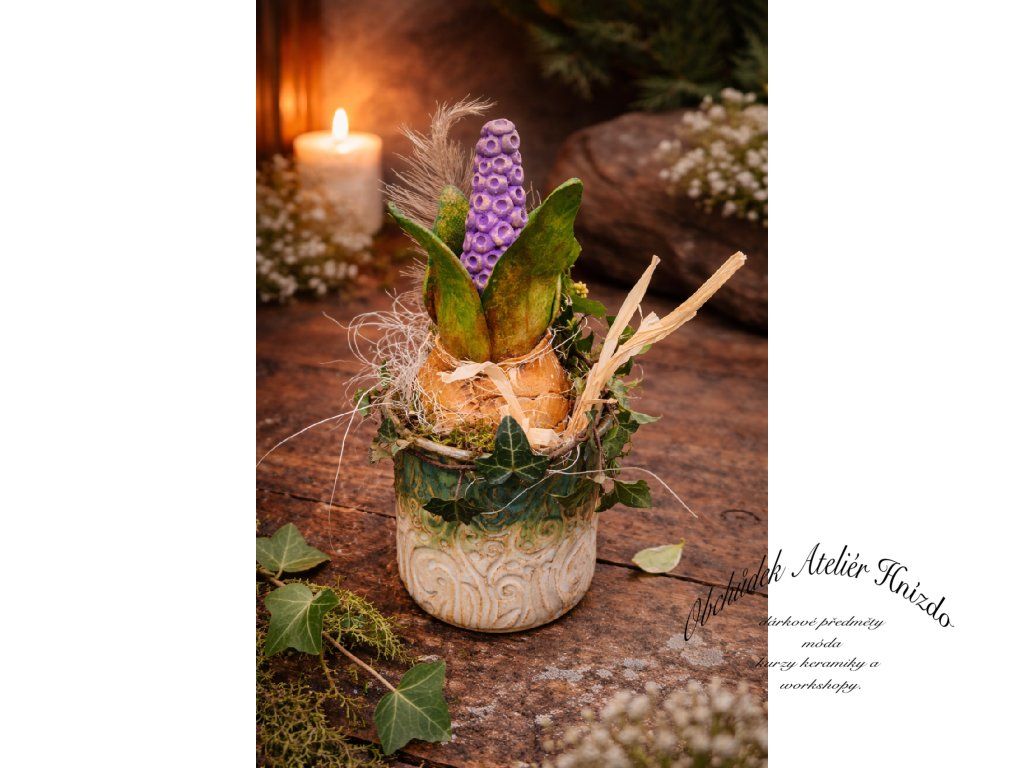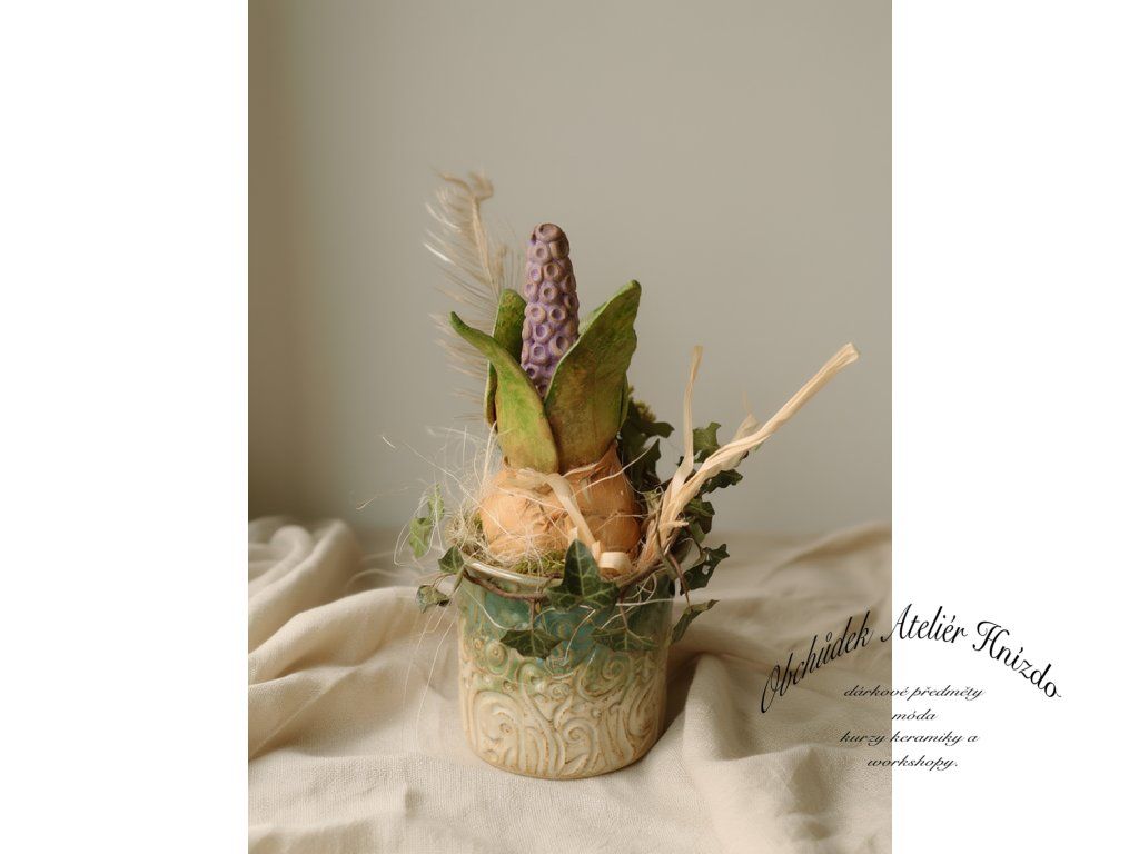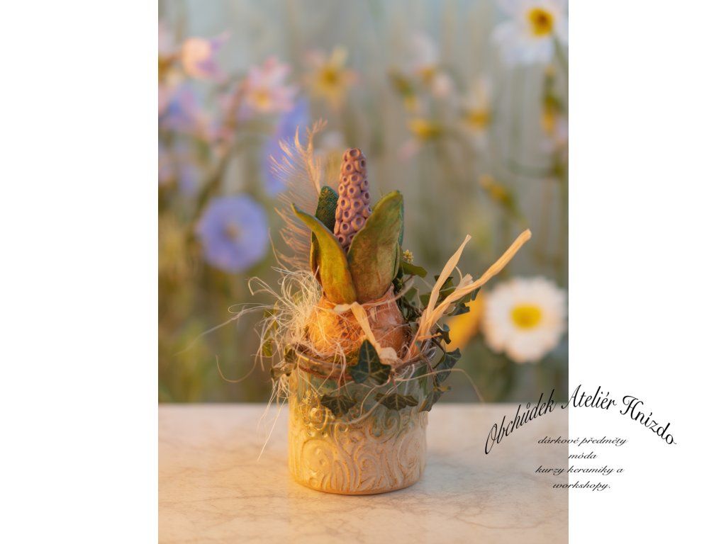 Dekorace kombinuje keramiku s přírodními materiály a je tvořena s důrazem na detail, jemnost a přírodní atmosféru.
