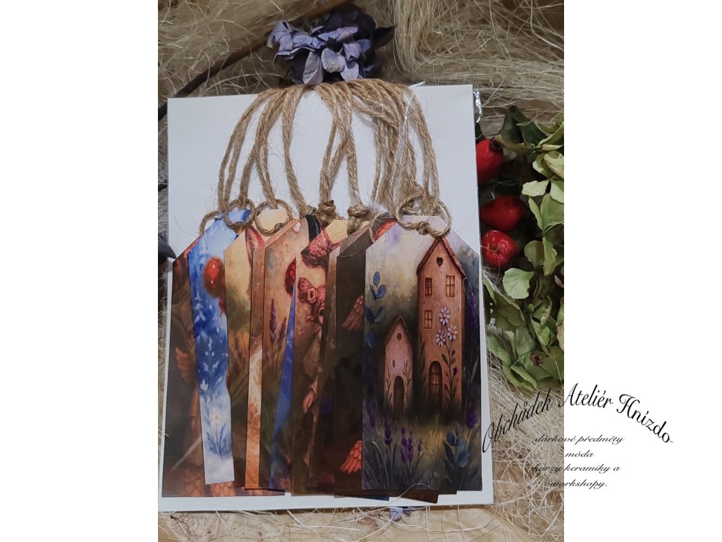 Sada 12 elegantních visaček na dárky z prémiového papíru s vyšší gramáží, zdobených autorskými ilustracemi Romany Laštovičkové.