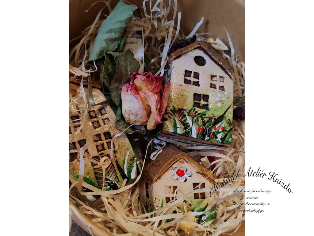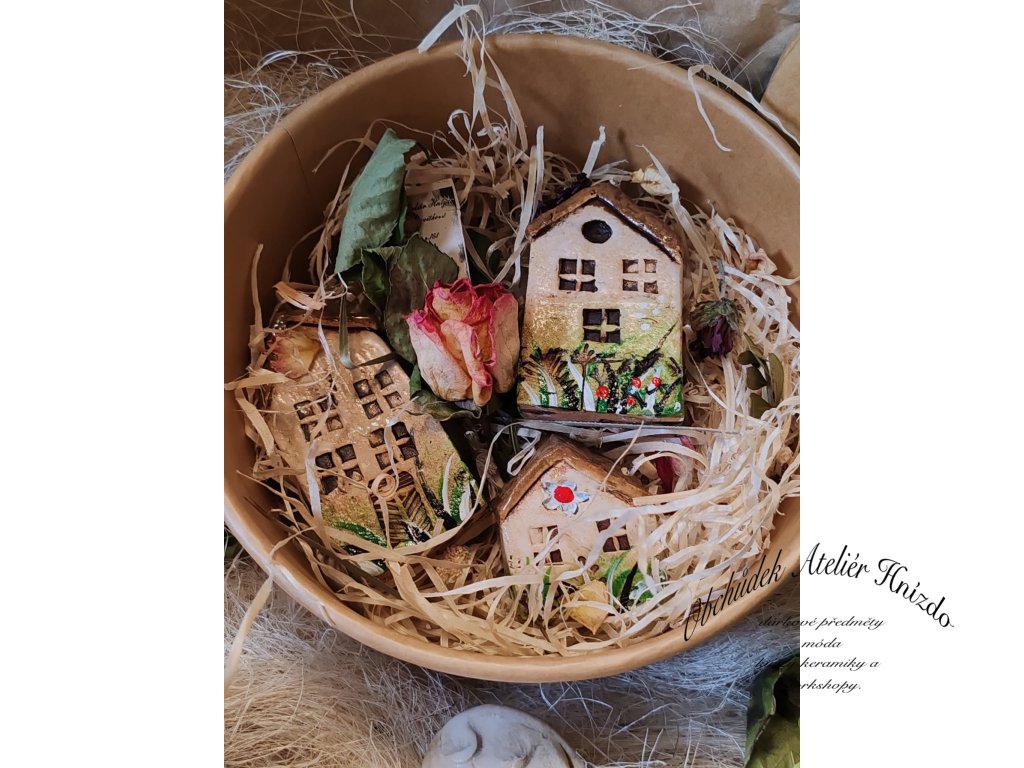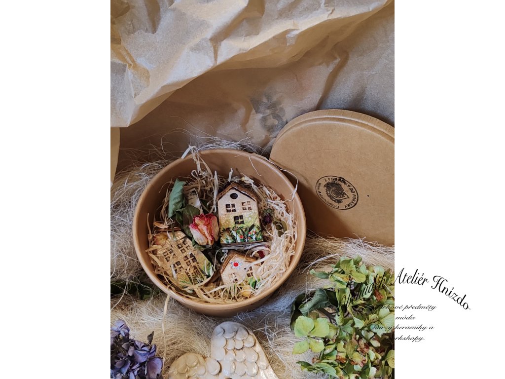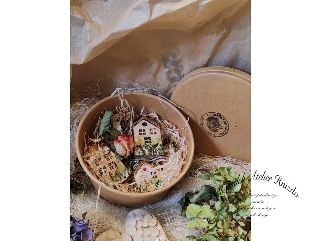 Originální sada tří keramických domečků od Romany Laštovičkové, pečlivě uložená v kulaté dárkové krabičce. Každý domeček je ručně modelovaný, pálený na vysokou teplotu (1200 °C), dekorovaný glazurami z Roudnice, oxidem železa a domalovaný barvami Darwi. Díky tomu jsou domečky pevné, odolné a mohou zdobit interiér i venkovní prostor – snesou déšť i mráz.