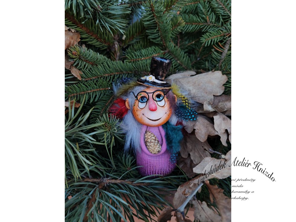 Ručně vyráběná keramická dekorace – skřítek jménem Bartoloměj. Elegantní a trochu zasněný lesní skřítek s cylindrem, brýlemi a barevnými peříčky působí moudře, klidně a přívětivě. Bartoloměj je typ skřítka, který rád pozoruje svět kolem sebe a střeží domov s tichým úsměvem.