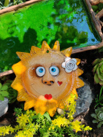 Páleno na 1200C domalováno oxidy železa, barvami na keramiku a zafixováno pryskyřicí.