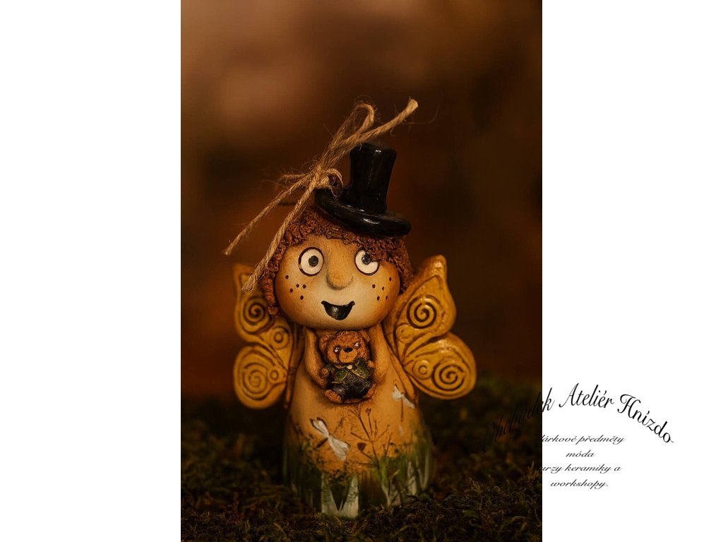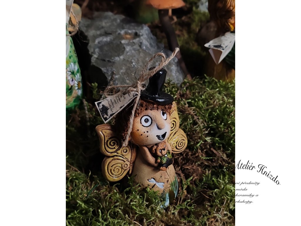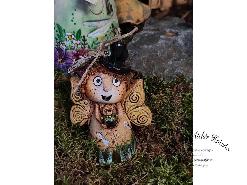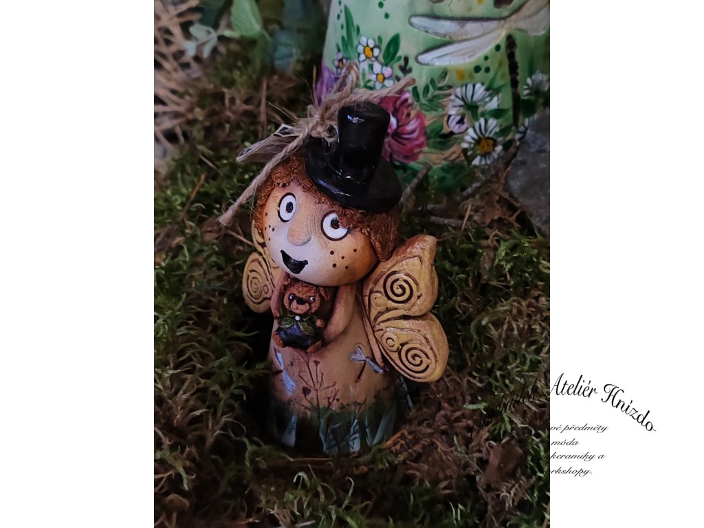 Malá okřídlená bytůstka, která si do světa přináší kousek radosti, fantazie a tichého kouzla. V ručkách svírá svého věrného medvídka, na hlavě má elegantní klobouček, a její křidélka vypadají, jako by každou chvíli mohla vzlétnout...