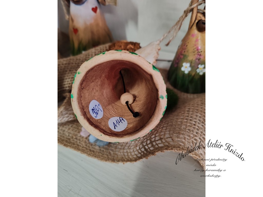 Ručně vyráběný keramický zvoneček – anděl jménem Rafael.
