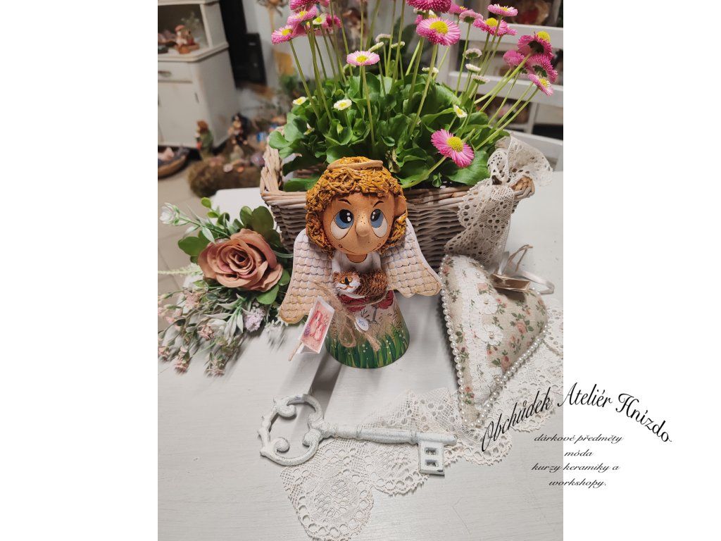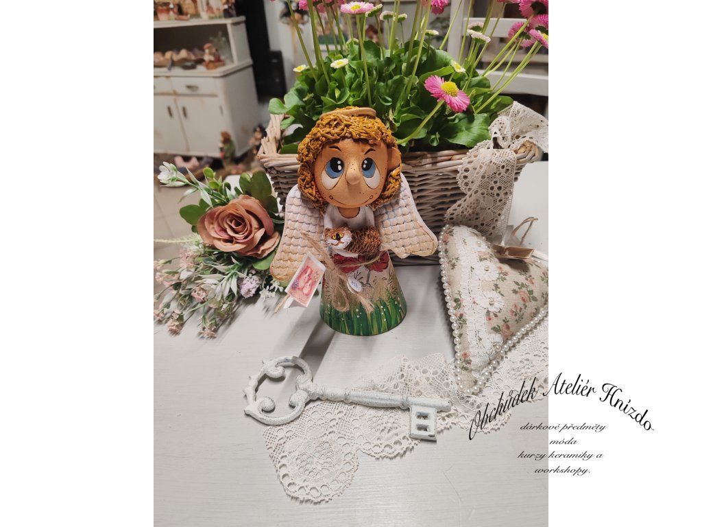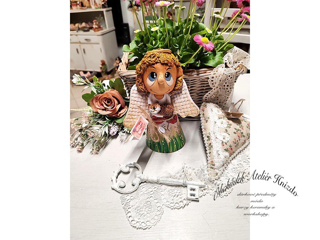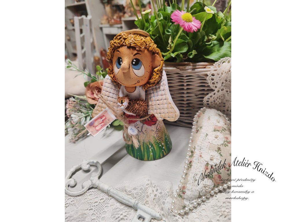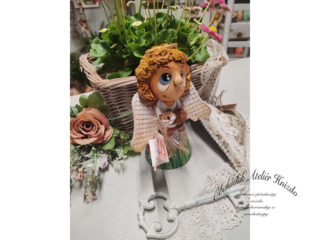 Malý andílek s jemnými křídly drží ve svých rukách drobného společníka, kterého chrání a opatruje. Je symbolem něhy, péče a tichého porozumění. Přináší do domova klidnou energii a pocit, že na nic nejsme sami.