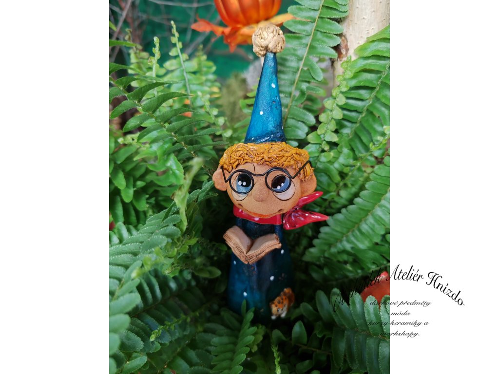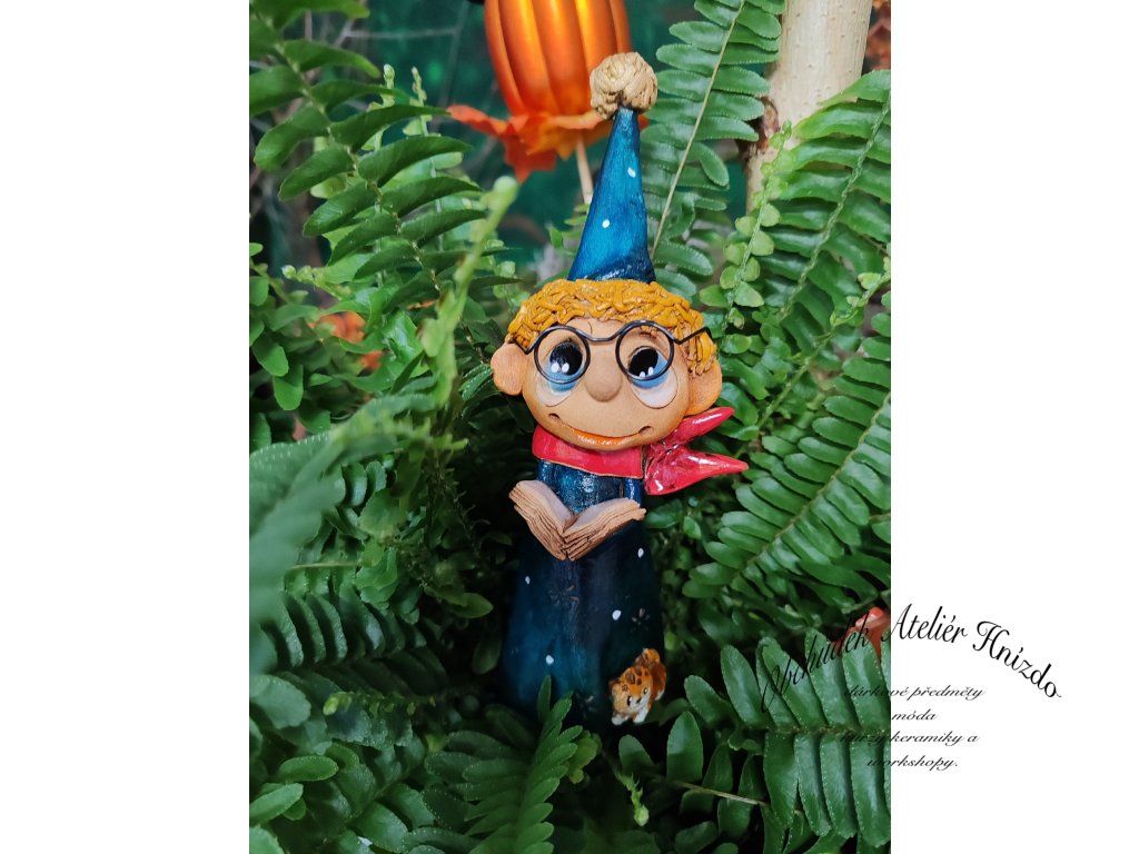 Zasněný mudrc s vysokou špičatou čepicí, knihou v rukou a červenou šálou, která mu vlaje kolem krku. Bartoloměj miluje příběhy, kouzla ukrytá mezi řádky a tiché večery plné fantazie.
